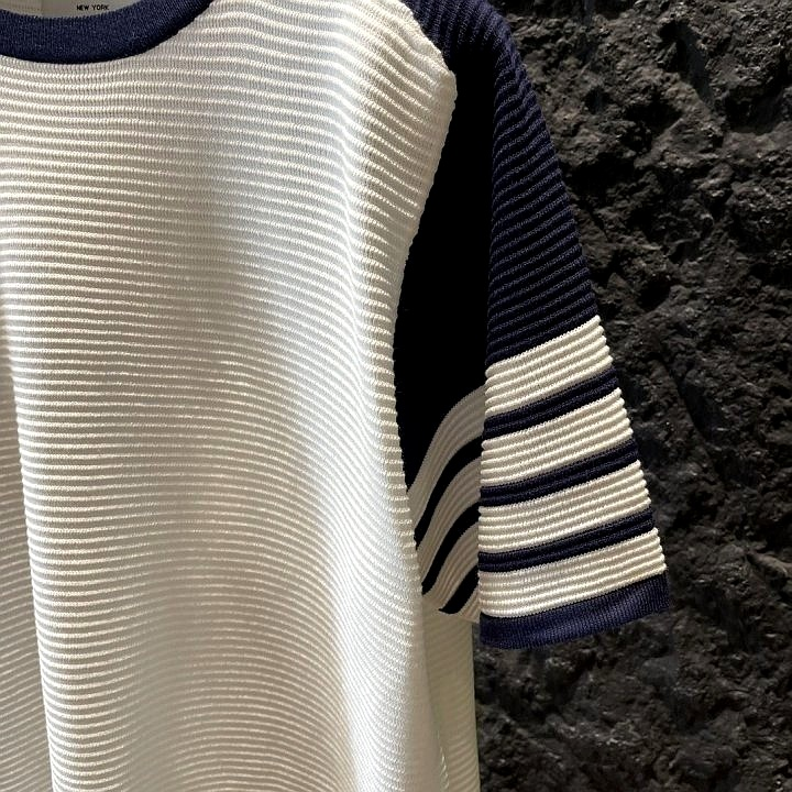톰. 투톤배색 엠보 4선완장 네이비. 그레이