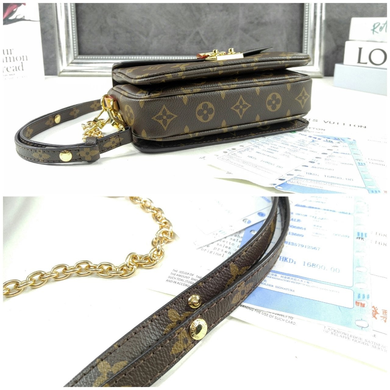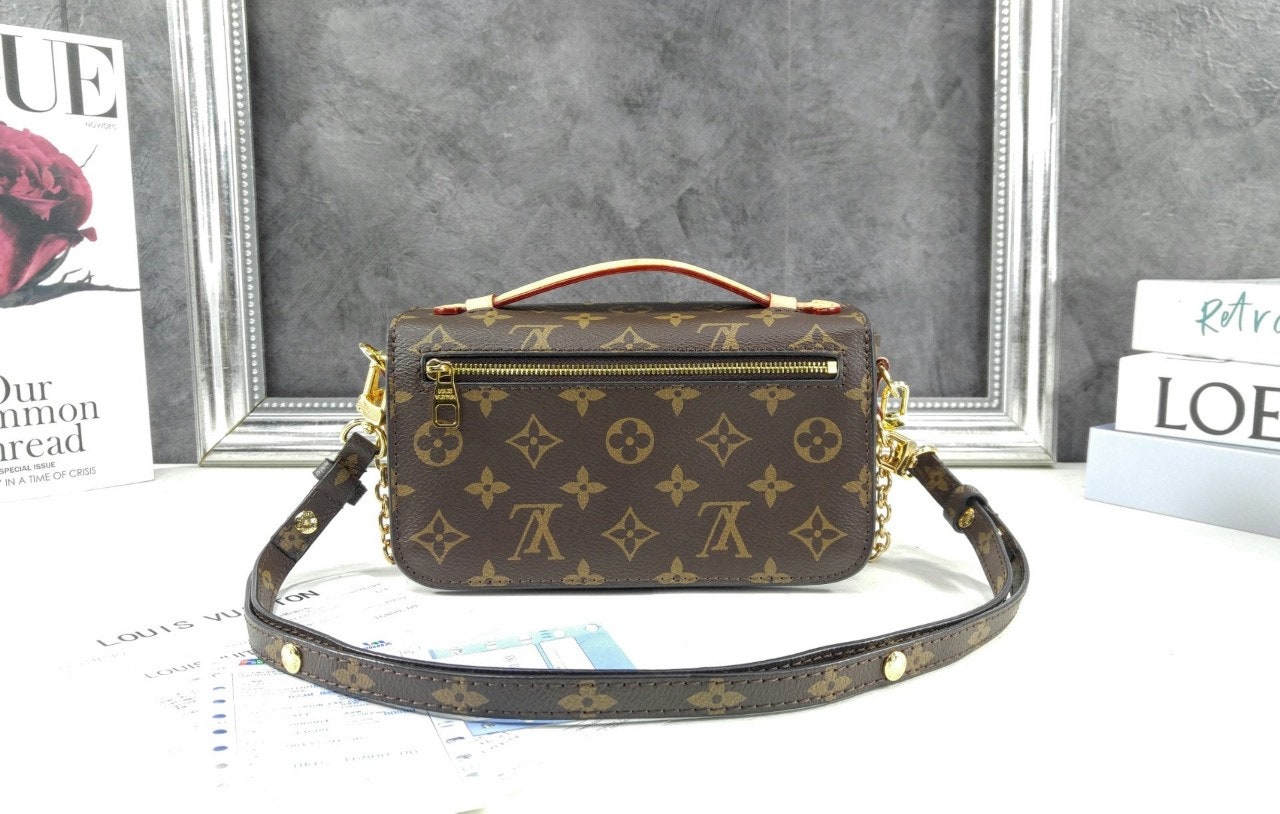 모노그램 캔버스와 천연 카우하이드 가죽 트리밍 및 S락 시그니처가 조화를 이루는 포쉐트 메티스 이스트 웨스트 백. 짧은 숄더 백 스타일로 트렌디하게 연출할 수 있는 골드 색상의 체인과 같은 새롭고 현대적인 디테일과 하우스의 상징적인 요소가 어우러진 디자인. 스마트폰을 보관할 수 있는 넉넉한 크기. 세 개의 내부 수납공간과 내부 및 외부의 지퍼형 포켓을 갖춘 아이템.