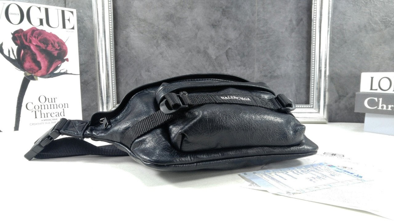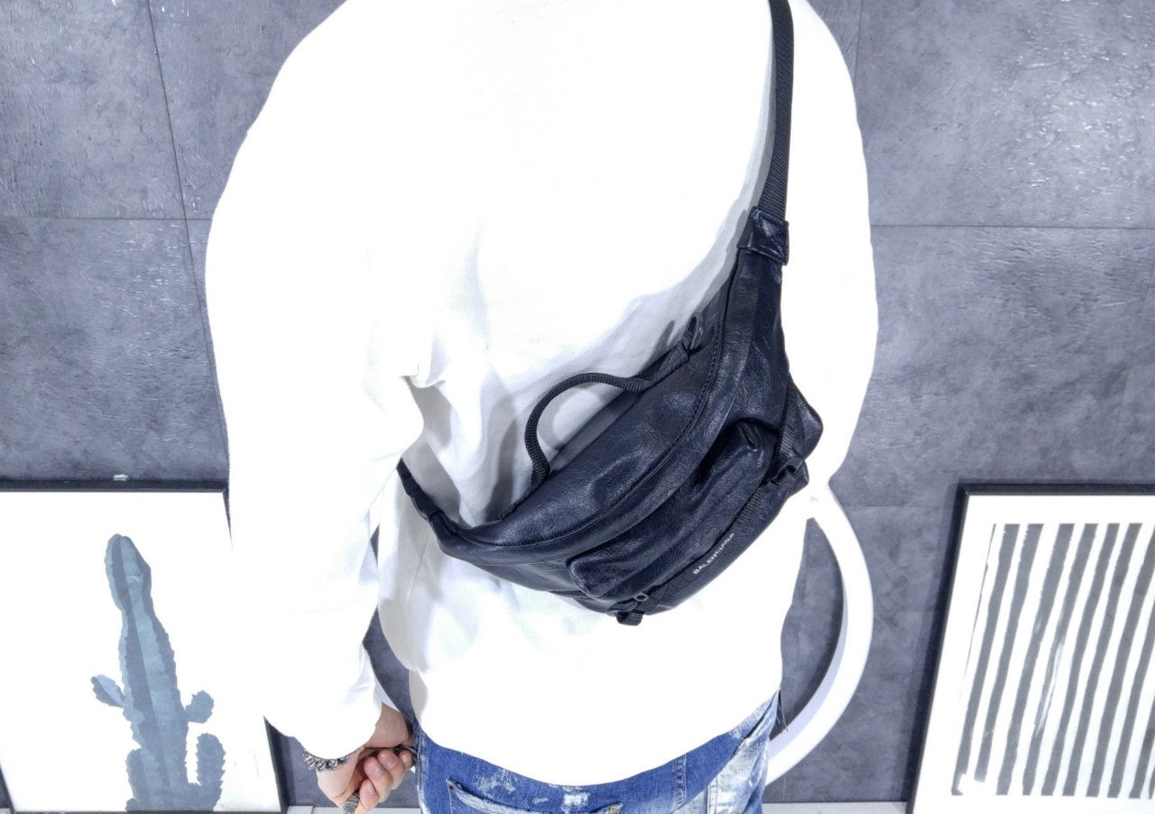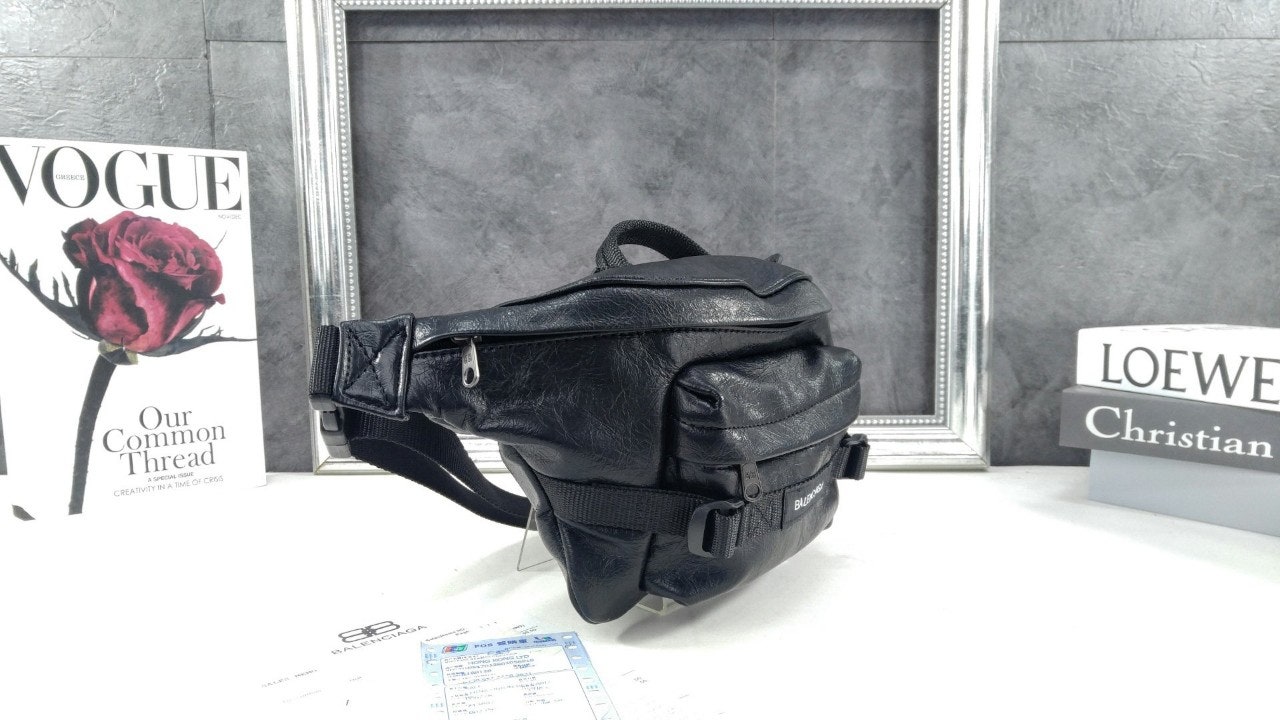 블랙 아레나 램스킨 소재의 아미 벨트백 라지