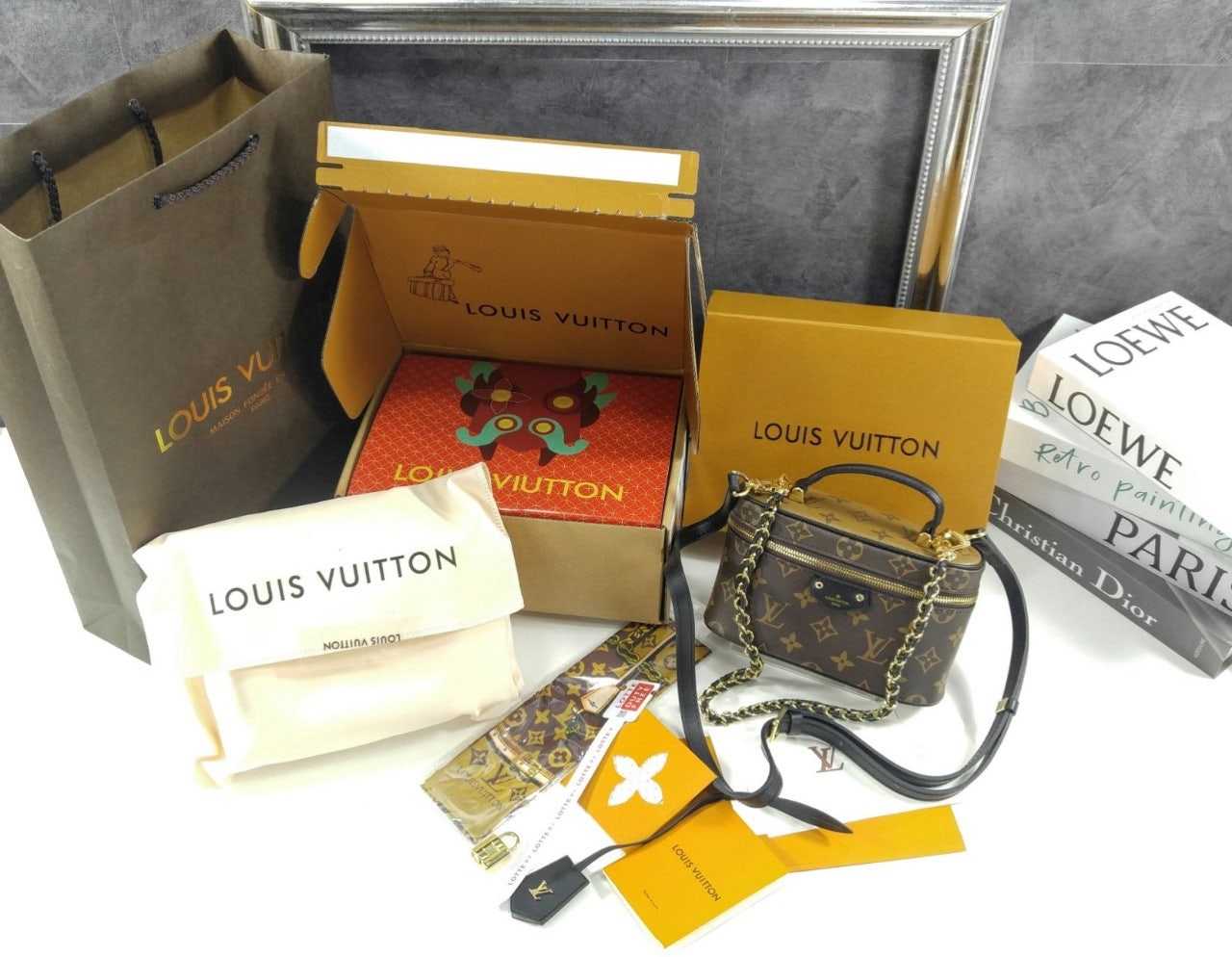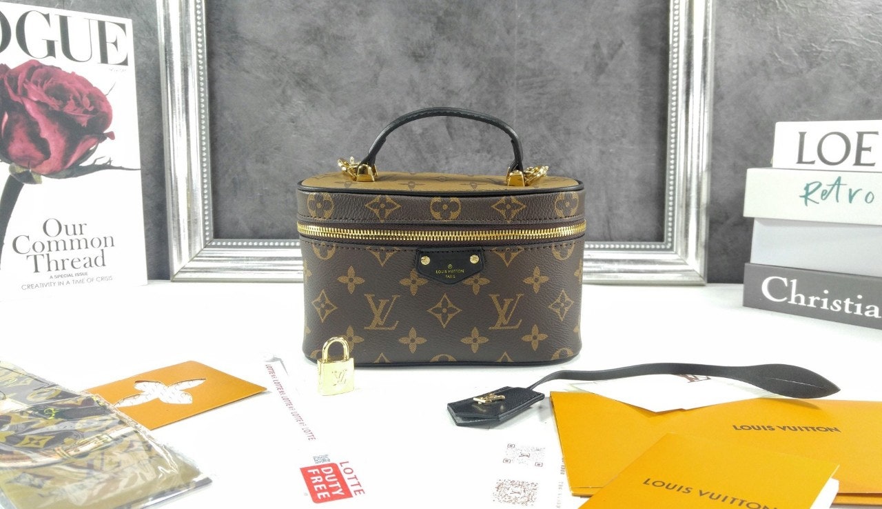 유서 깊은 베니티 케이스에서 영감을 받아 여행의 정취를 담아낸 베니티 체인 파우치. 모노그램 캔버스 소재. 가죽 소재의 트리밍을 더한 상단 핸들과 탈착형 브레이디드 체인이 조화를 이루는 슬림한 라인의 세련된 디자인. LV가 새겨진 패드락, 가죽 키 벨 등 다양한 시그니처 디테일.