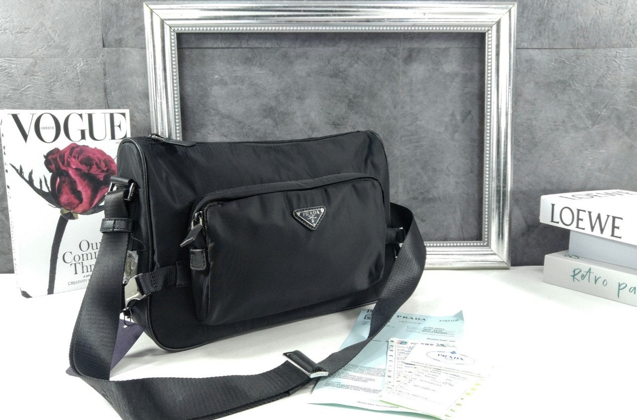 라지 리나일론 및 사피아노 가죽 숄더백