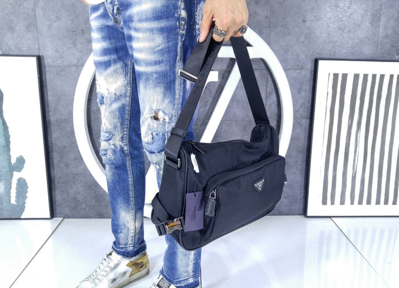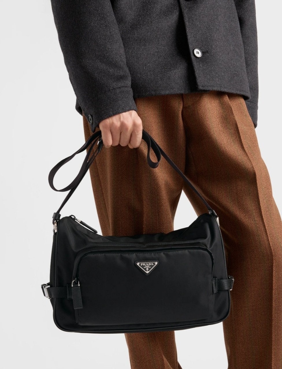 세련된 라인과 실용적인 현대적 디테일로 스포츠 기능성이 강조된 가죽 숄더 백입니다. 프☆다의 상징적인 나일론이 혁신적으로 발전한 리나일론 소재로 제작된 이 액세서리는 사피아노 가죽 디테일이 독특하고 세련된 느낌을 더합니다. 프☆다의 상징적인 코드가 집약된 유용한 스타일은 에나멜 금속 트라이앵글 로고로 장식되어 있습니다.