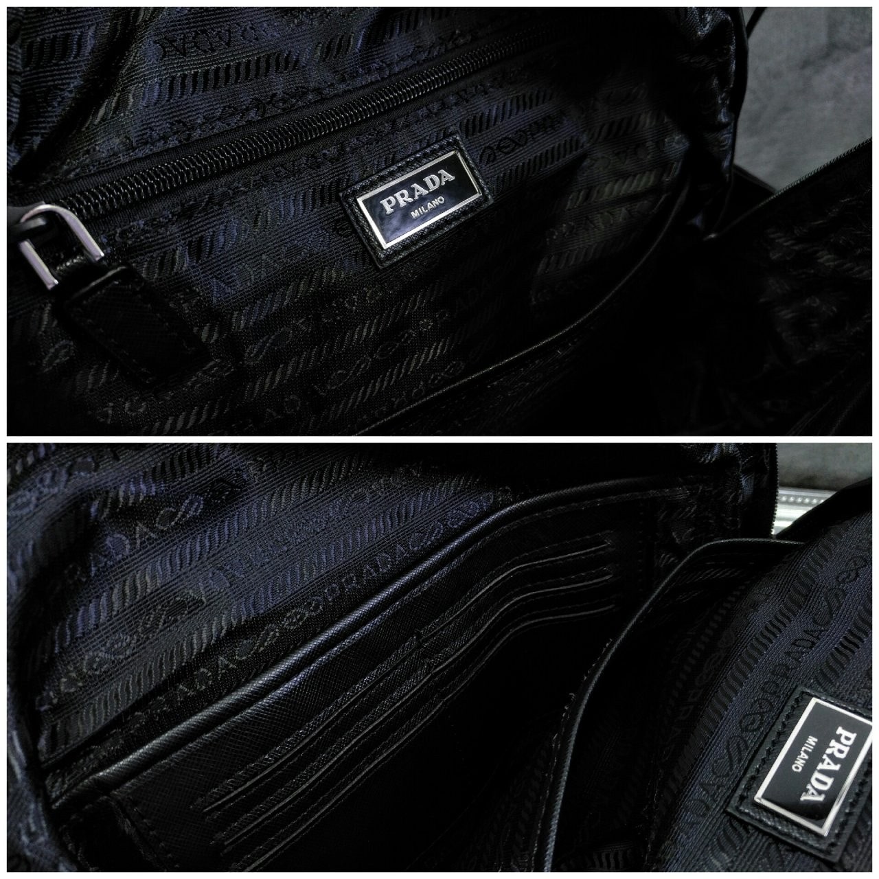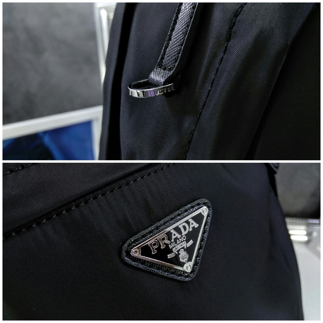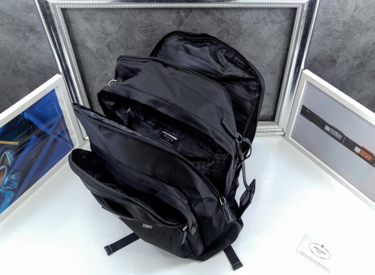 트리밍 및 핸들조절형 나일론 숄더 스트랩패딩이 들어간 기능성 소재 후면유광 스틸 마감 메탈 하드웨어측면에 유광 스틸 마감 메탈 D링지퍼 클로저가 달린 메인 수납공간전면에 지퍼식 외부 포켓나일론 라이닝내부 로고 태그전면 외부에 에나멜 트라이앵글 로고후면에 트롤리용 밴드