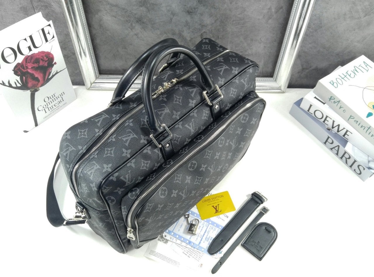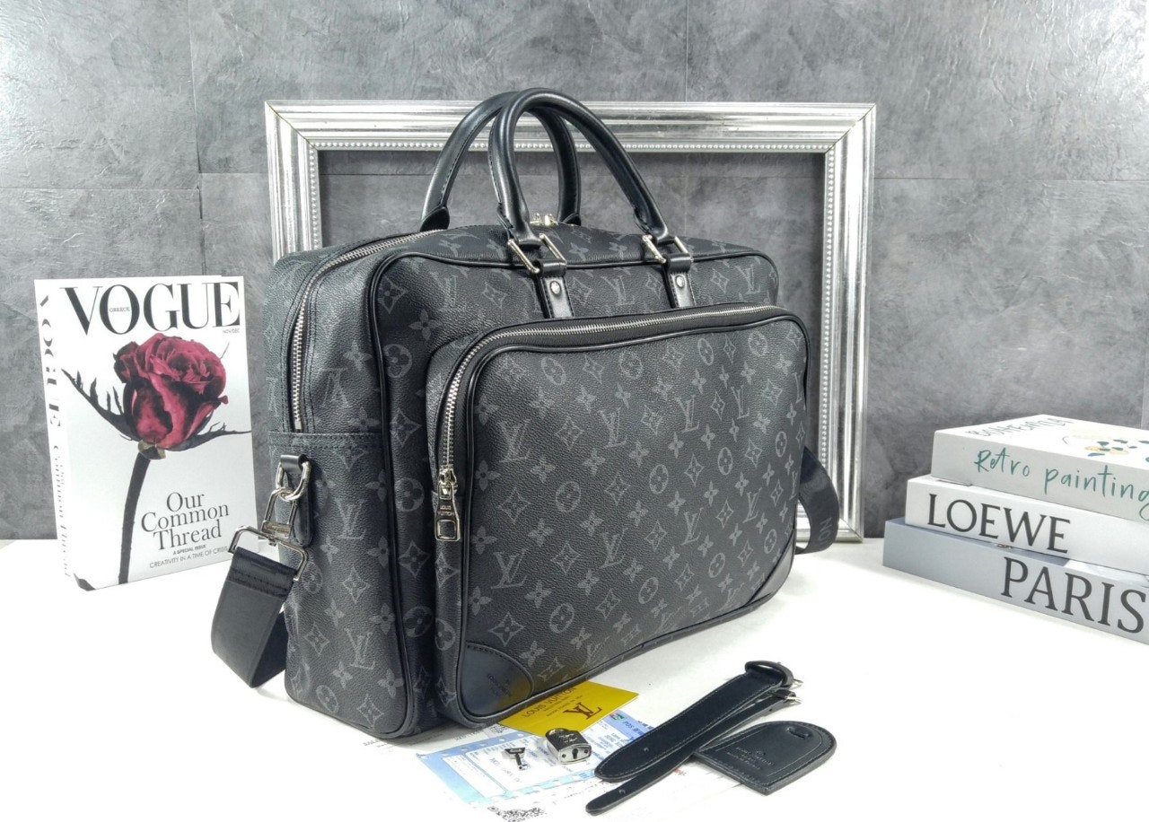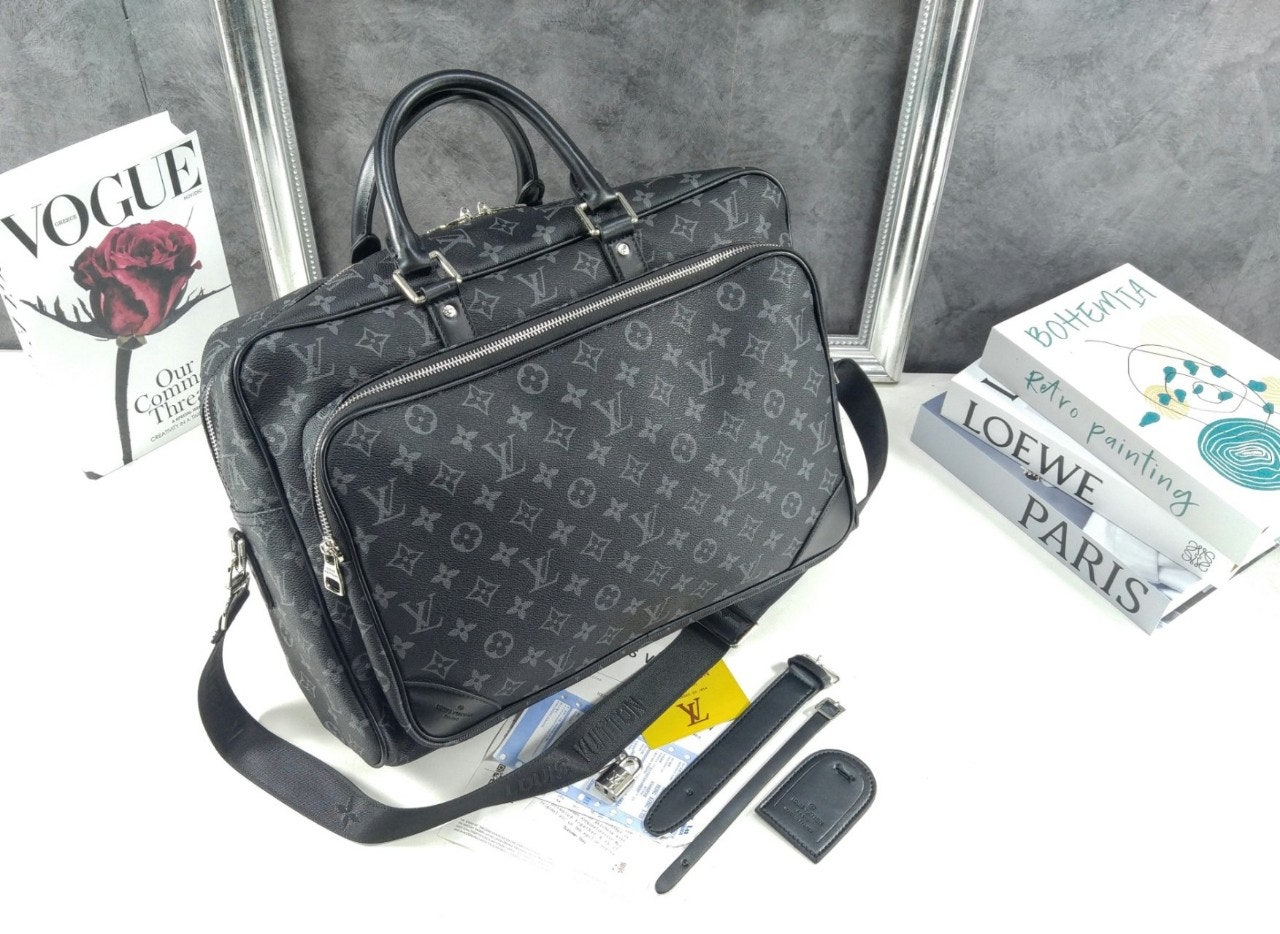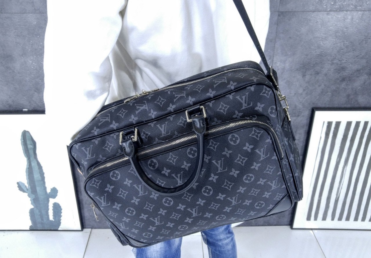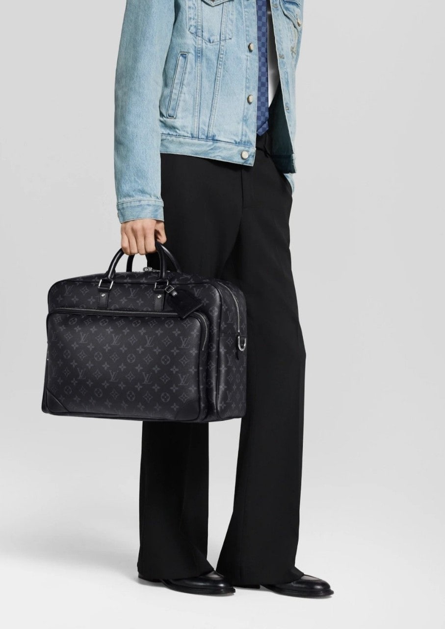 모노그램 이클립스 캔버스 소재로 선보이는 매력적인 위켄더 백. 호라이즌 롤링 수트케이스 위에 딱 맞게 올려둘 수 있는 크기. 뒤쪽의 밴드를 활용하여 수트케이스에 간편하게 부착할 수 있는 디자인. 앞면, 뒷면과 내부에 구성한 다양한 포켓. 손으로 들거나 숄더 백 또는 크로스 바디 백으로 연출할 수 있는 활용도 높은 아이템.