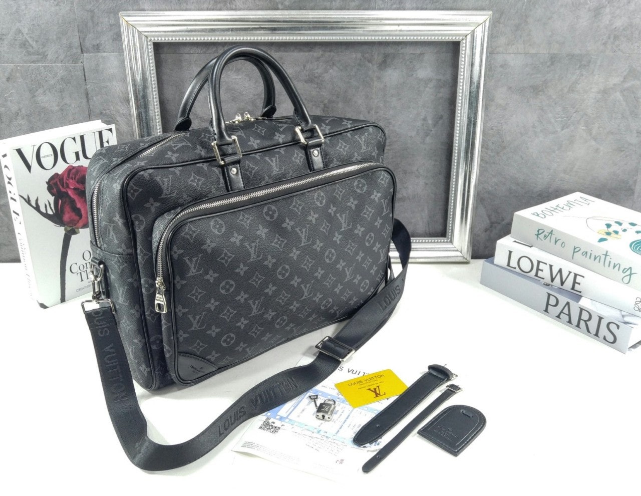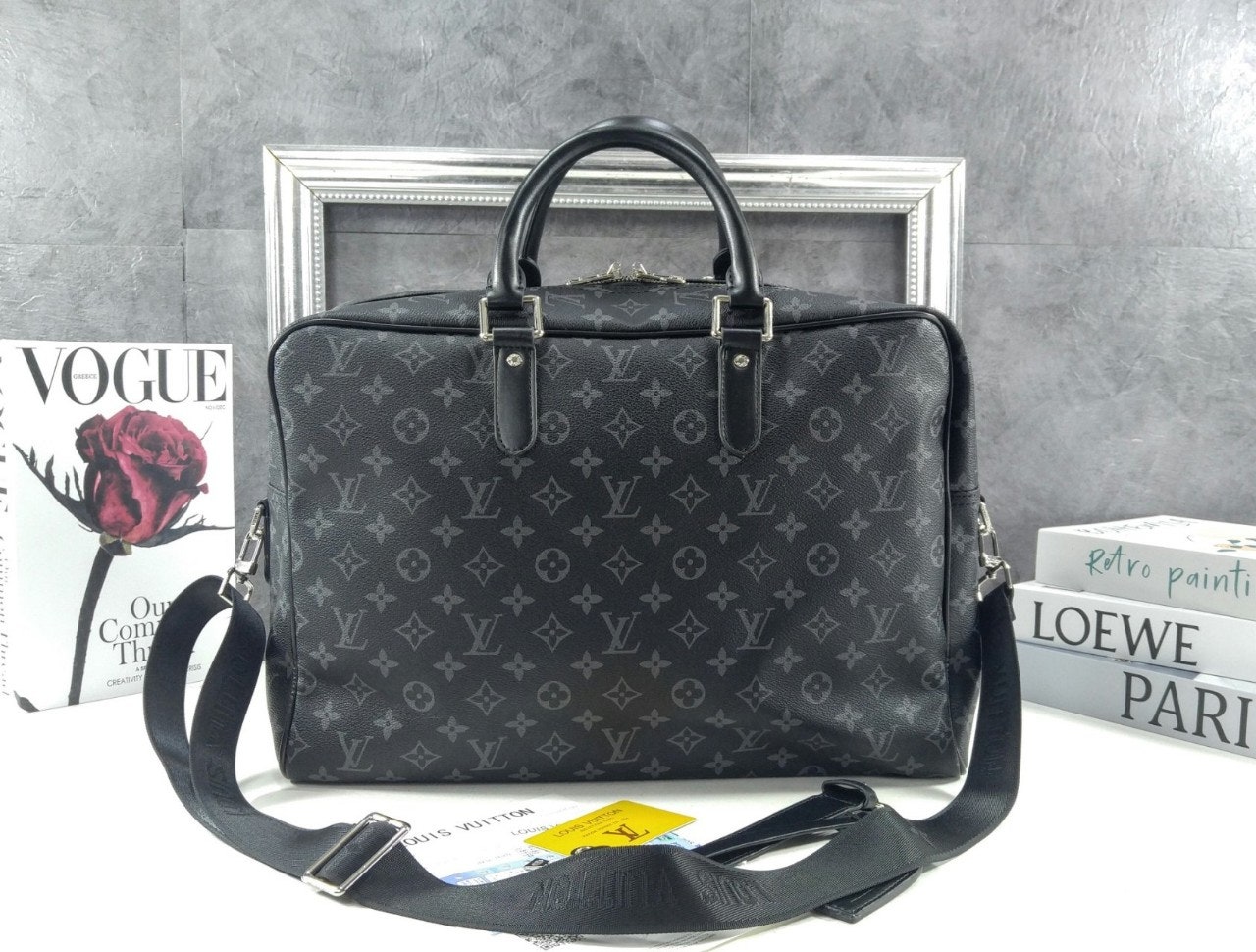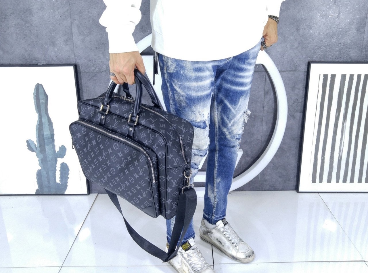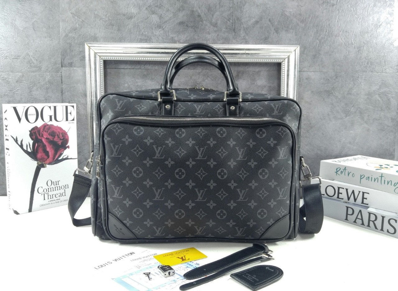 모노그램 이클립스 캔버스 소재로 선보이는 매력적인 위켄더 백. 호라이즌 롤링 수트케이스 위에 딱 맞게 올려둘 수 있는 크기. 뒤쪽의 밴드를 활용하여 수트케이스에 간편하게 부착할 수 있는 디자인. 앞면, 뒷면과 내부에 구성한 다양한 포켓. 손으로 들거나 숄더 백 또는 크로스 바디 백으로 연출할 수 있는 활용도 높은 아이템.