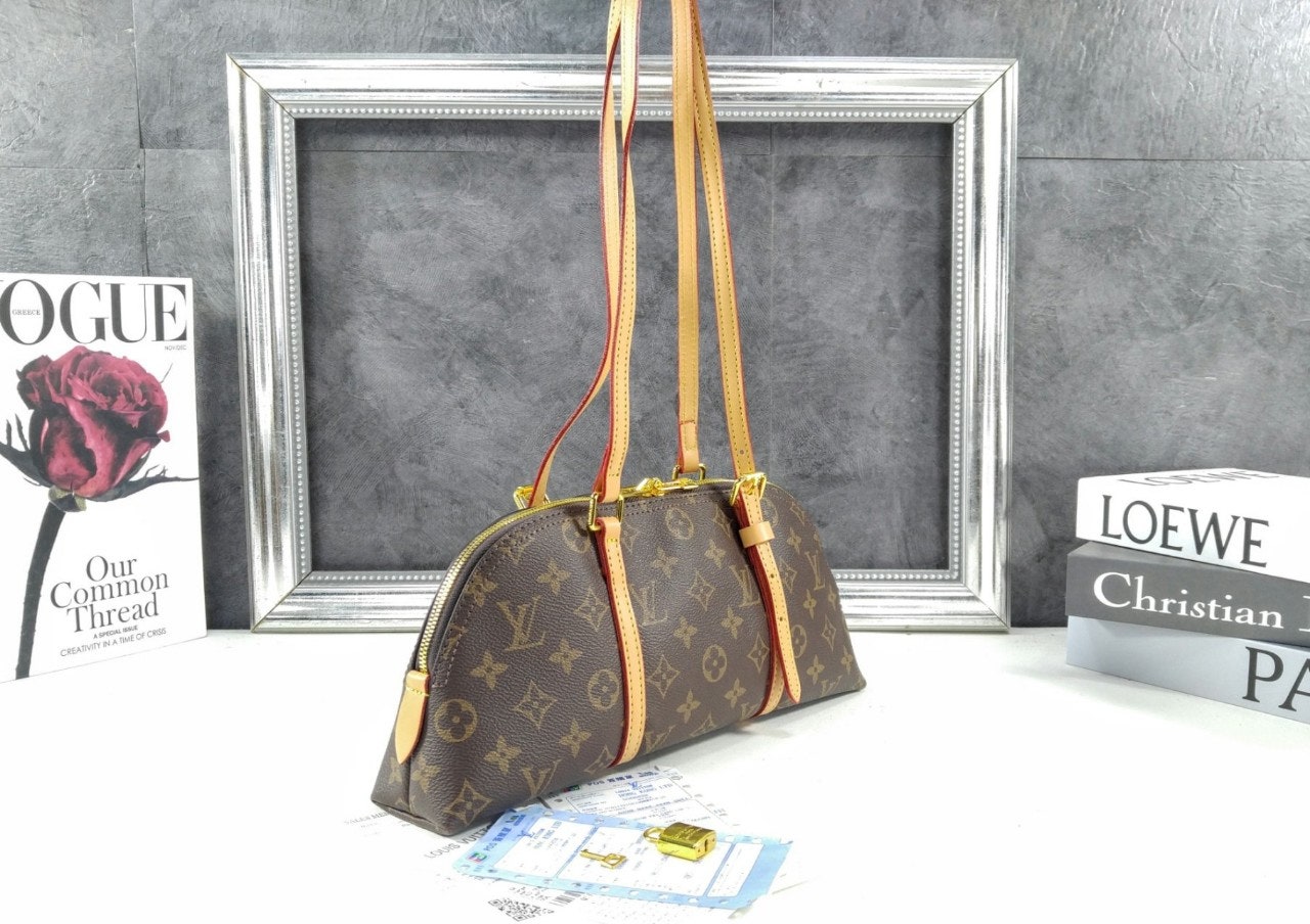 80년대 루☆비통의 핸드백을 현대적인 볼링 백 디자인으로 재해석. 캔버스 소재. 빈티지한 감성을 자아내며 지퍼 잠금장치와 완벽한 길이로 조절할 수 있는 스트랩을 구성하여 다양하게 스타일링할 수 있는 아이템.
