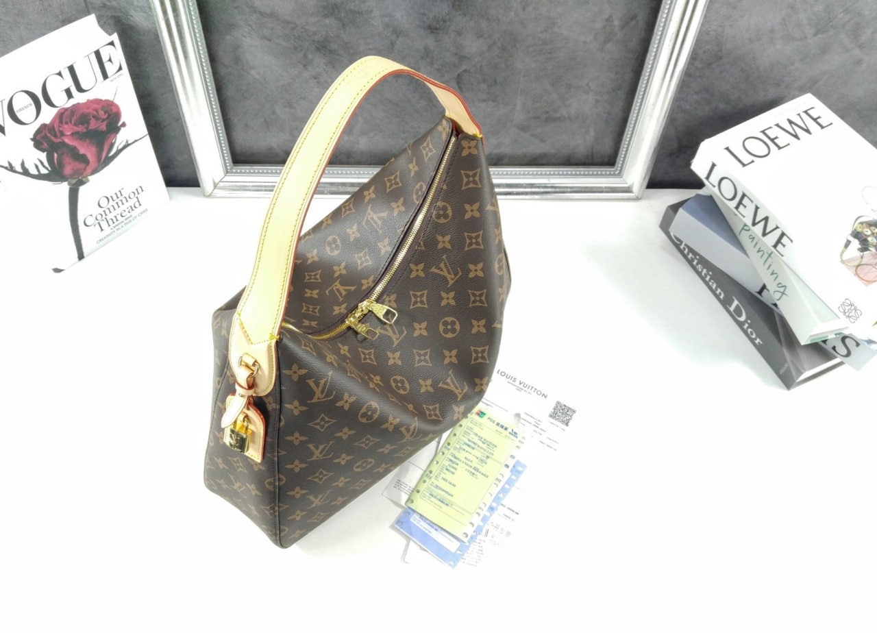 출퇴근용뿐만 아니라 다양하게 활용하기 좋은 독특한 실루엣의 슬라우치 MM. 하우스의 상징적인 모노그램 캔버스 소재에 새로운 시그니처 패드락 네임 등 골드 색조의 하드웨어로 포인트를 준 우아한 디자인. 컴팩트한 지갑, 스마트폰, 13인치 노트북과 같이 업무 시 또는 주말에 필요한 소지품을 보관할 수 있는 넉넉한 수납공간.
