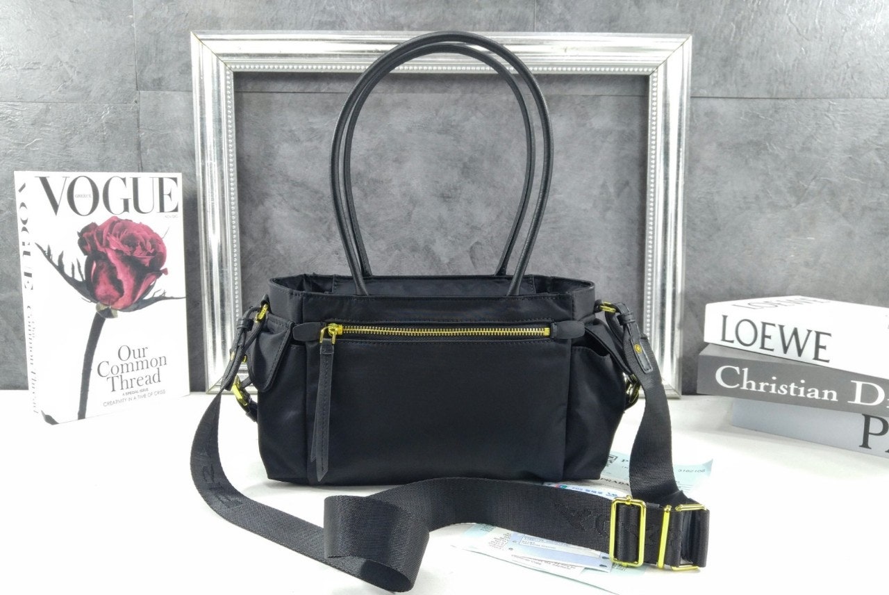 프☆다 익스플로어 미디엄 리나일론 및 가죽 토트백