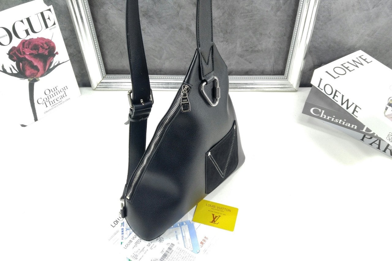 독특한 실루엣과 스타일리시한 V 더블 스티칭으로 장식한 스웨이드 소재의 앞면 포켓이 돋보이는 델타(Delta) 슬링백. 절제된 세련미를 선사하는 LV 터치 카프스킨 가죽 소재. 휴대폰, 월릿, 열쇠 등을 보관할 수 있는 지퍼형 메인 수납공간. 조절 가능한 스트랩으로 가슴 앞으로 메거나 어깨에 걸쳐 편안하게 연출할 수 있는 아이템.