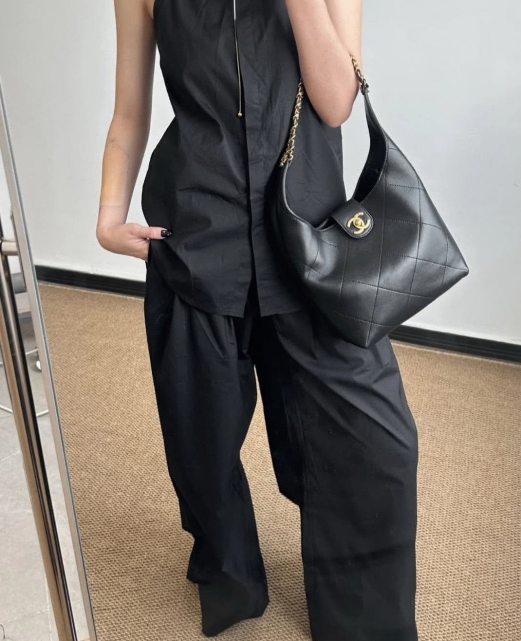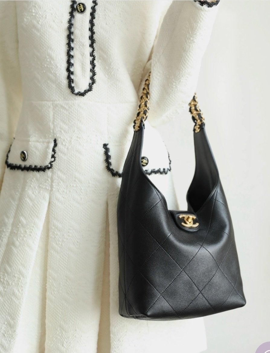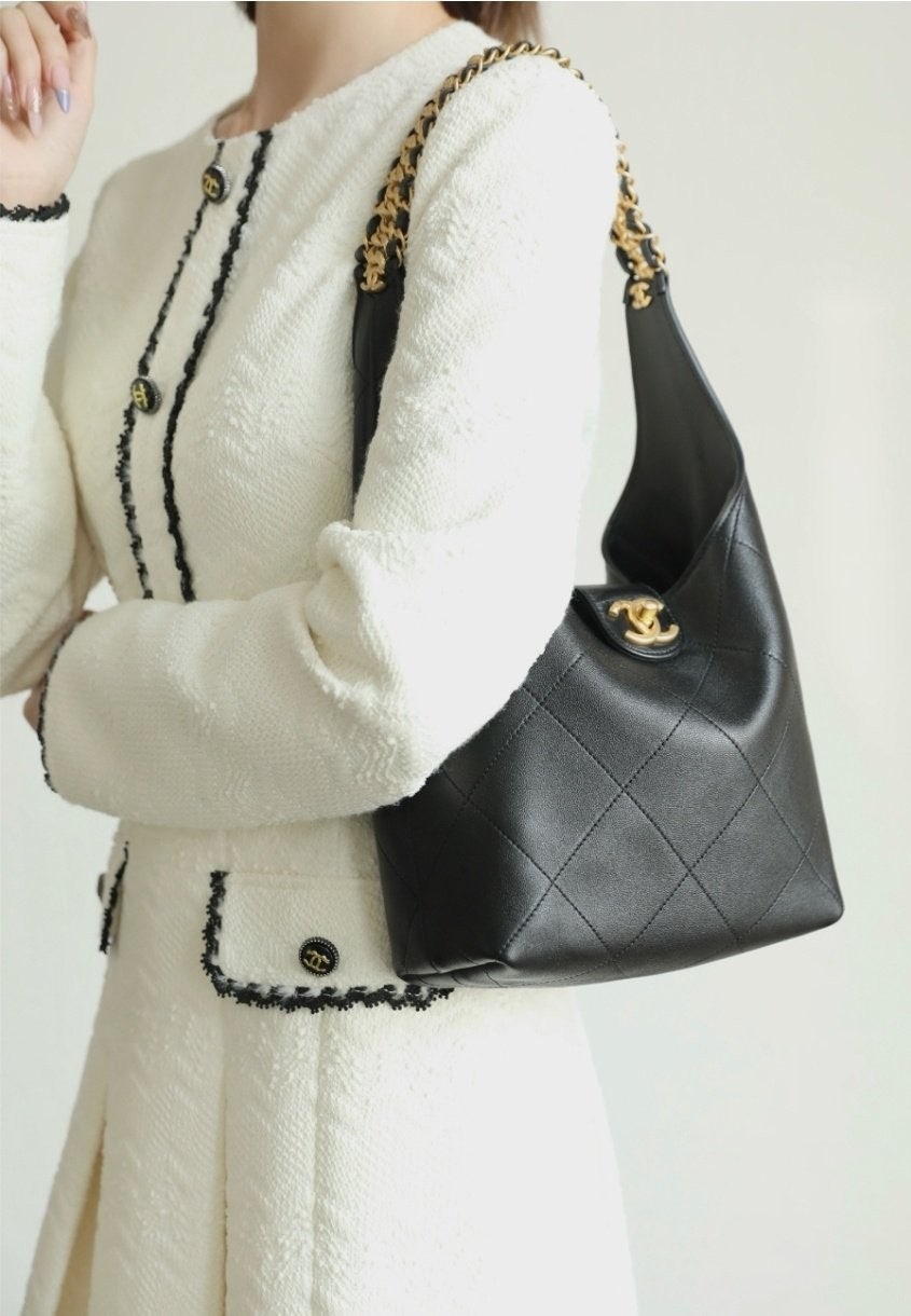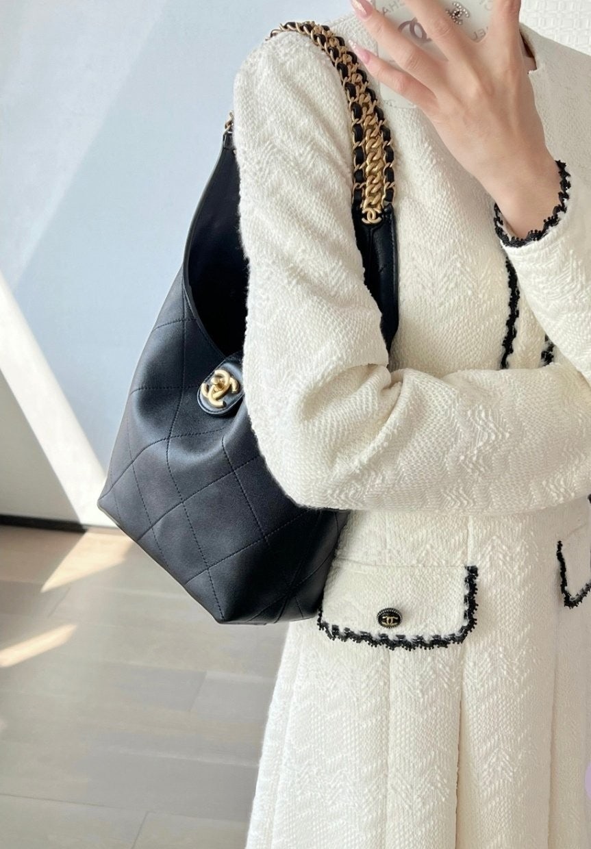 샤☆ 25SS CC 턴락 호보백 AS5403 골드 메탈 장식