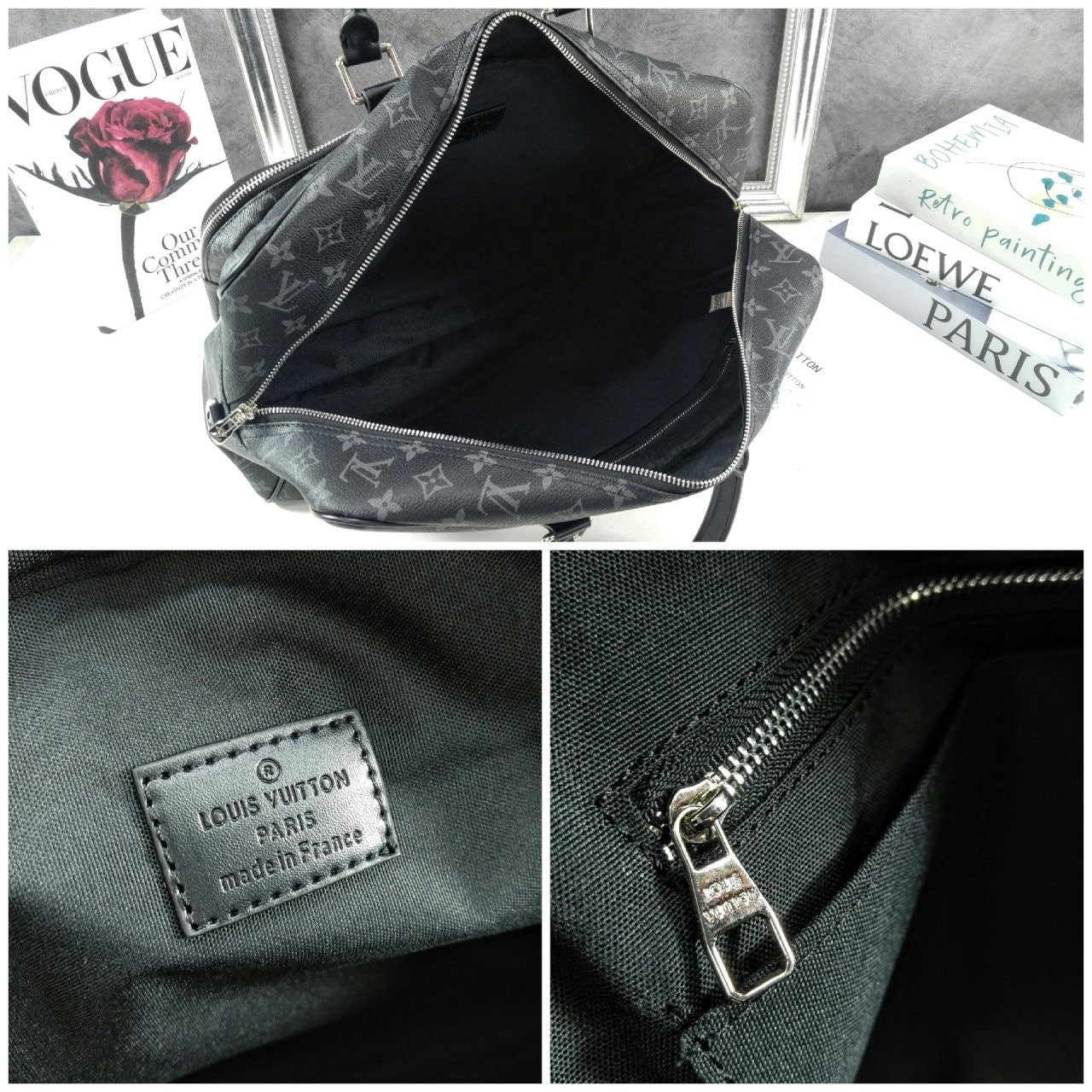 M11512 위켄더 백 모노그램 이클립스 캔버스 소재로 선보이는 매력적인 위켄더 백. 호라이즌 롤링 수트케이스 위에 딱 맞게 올려둘 수 있는 크기. 뒤쪽의 밴드를 활용하여 수트케이스에 간편하게 부착할 수 있는 디자인. 앞면, 뒷면과 내부에 구성한 다양한 포켓. 손으로 들거나 숄더 백 또는 크로스 바디 백으로 연출할 수 있는 활용도 높은 아이템. 모노그램 이클립스 코팅 캔버스 카우하이드 가죽 소재의 트리밍 트윌 소재의 안감 루테늄 색조의 하드웨어 기내용 사이즈 더블 지퍼형 잠금장치 패드락 앞면 지퍼형 포켓 내부의 지퍼형 플랫 포켓 탈착형 네임 스트랩:탈부착 가능, 길이 조절 가능 보증서 영수증 쇼핑백 등등 ㅡ마지막 사진구성 참고하세요 40 × 29 × 14 Price: 214,300 번호 01021937770 카톡 bwad2