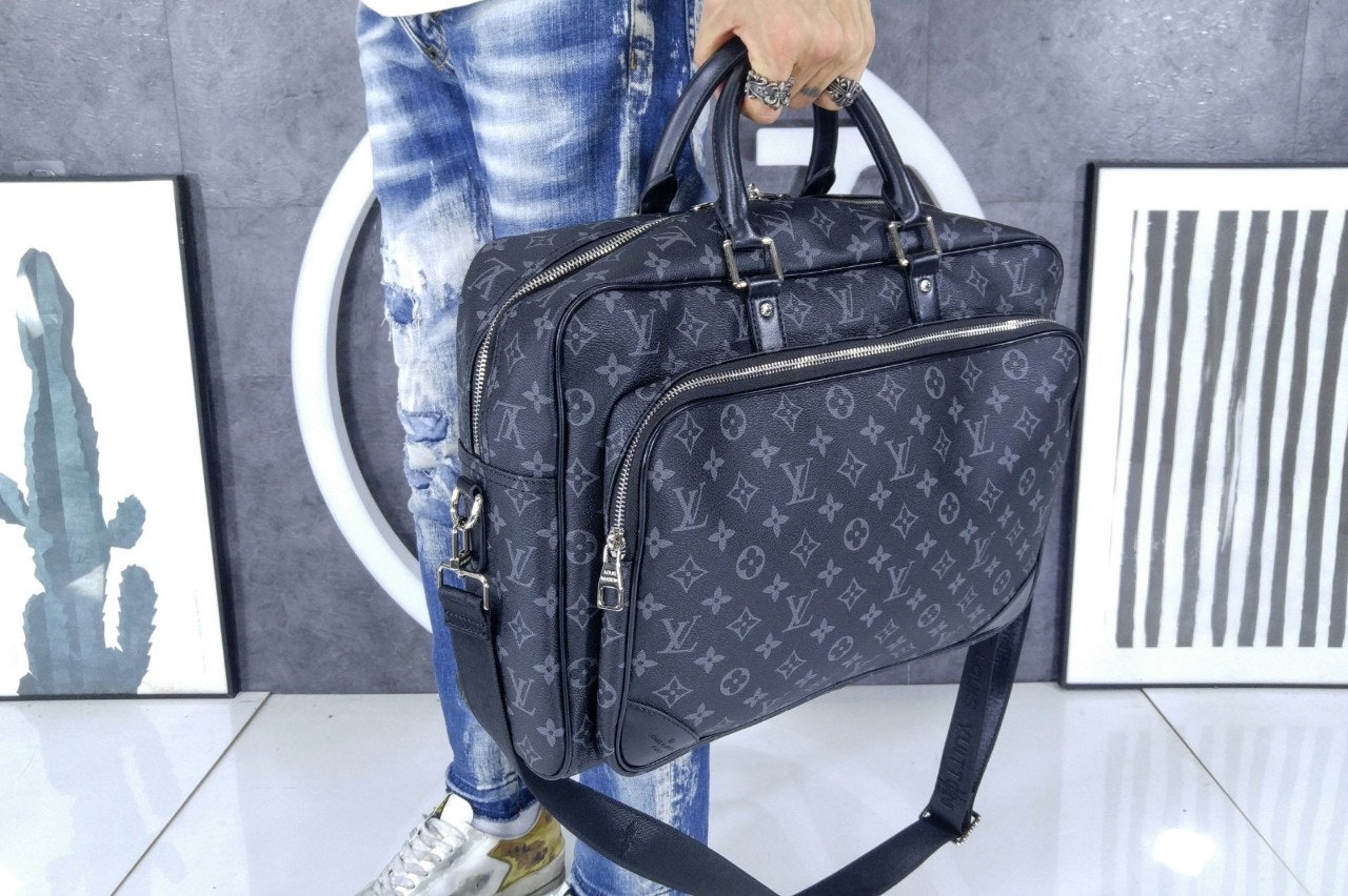 M11512 위켄더 백 모노그램 이클립스 캔버스 소재로 선보이는 매력적인 위켄더 백. 호라이즌 롤링 수트케이스 위에 딱 맞게 올려둘