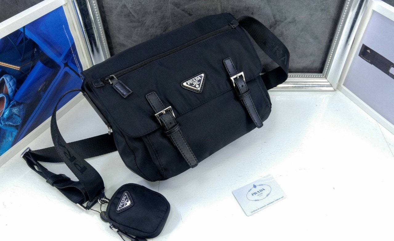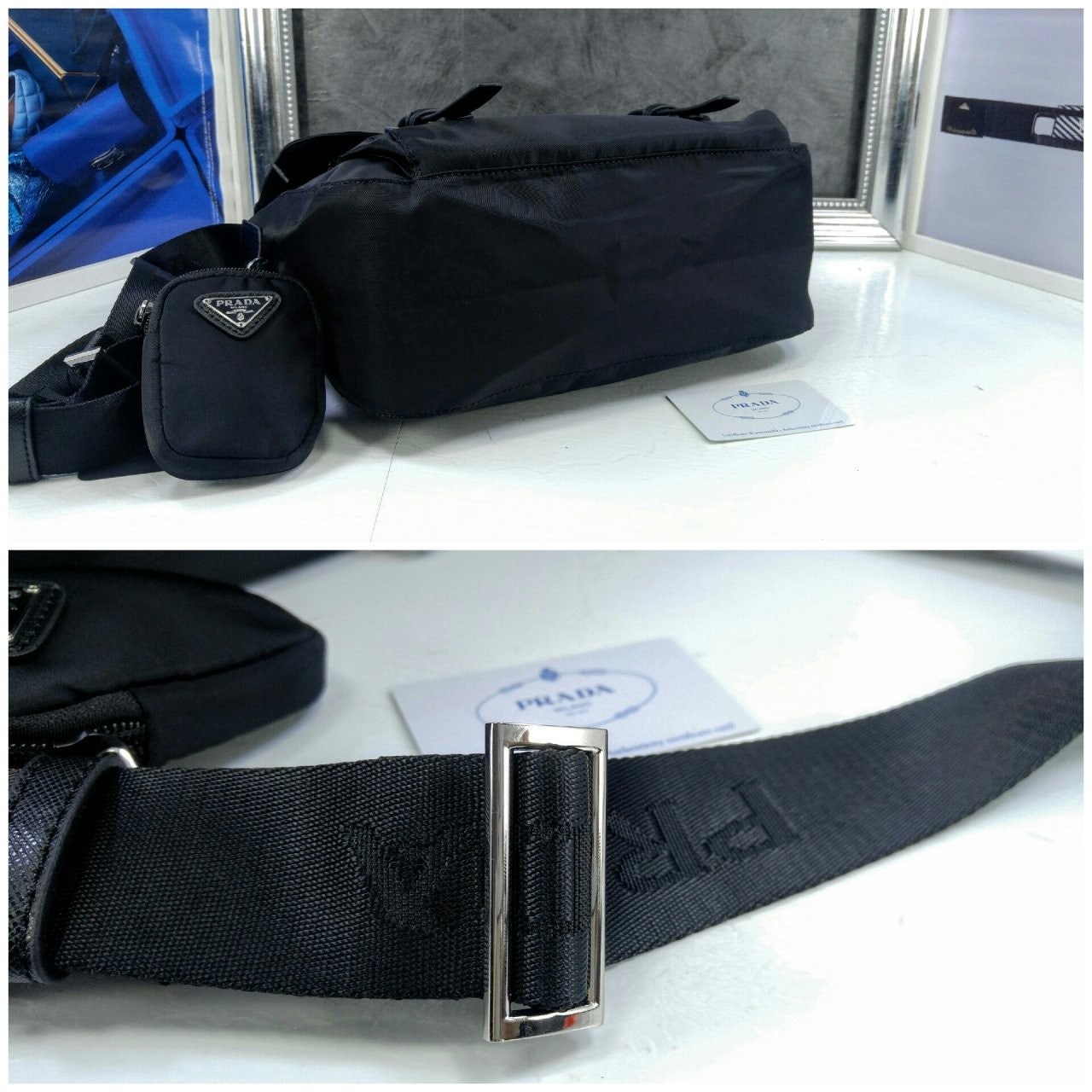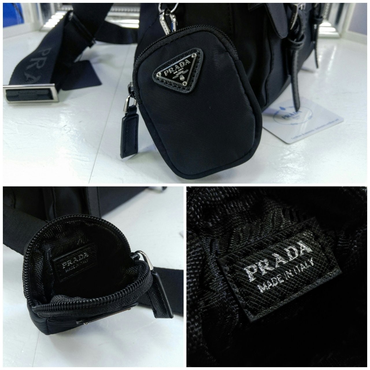 리나일론 소재의 숄더 백으로, 넓은 수납공간과 포켓이 특징이며 프☆다 컬렉션의 아이코닉한 액세서리인 탈부착형 파우치로 디자인을 업그레이드했습니다.