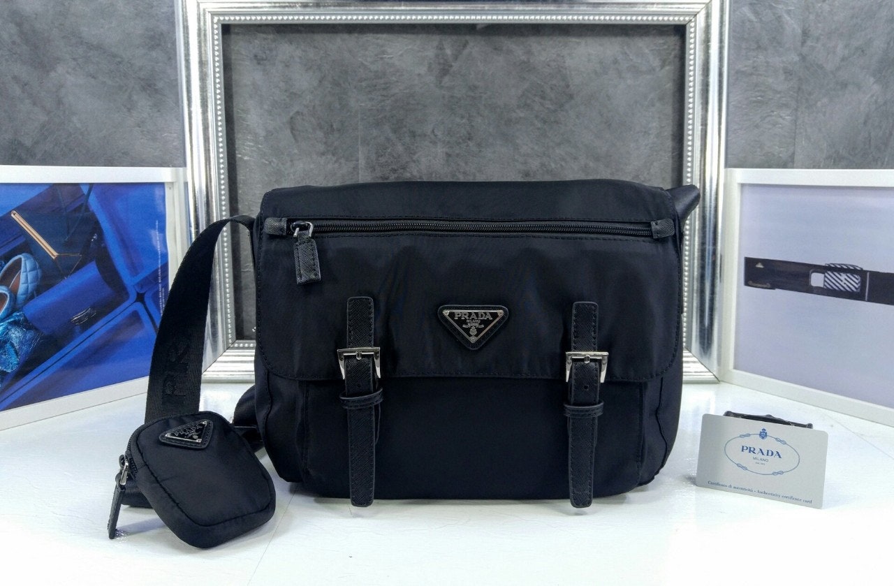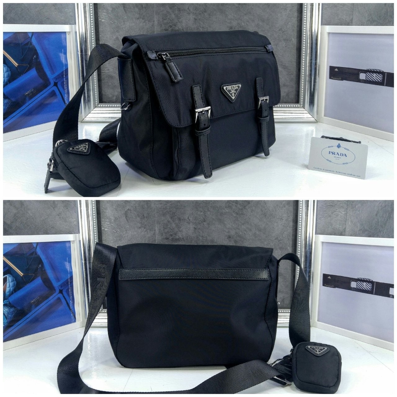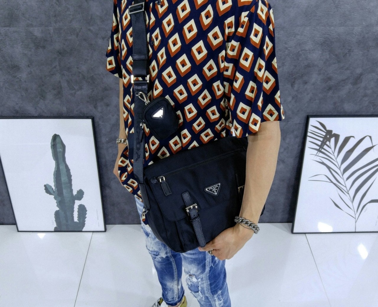 리나일론 소재의 숄더 백으로, 넓은 수납공간과 포켓이 특징이며 프☆다 컬렉션의 아이코닉한 액세서리인 탈부착형 파우치로 디자인을 업그레이드했습니다.