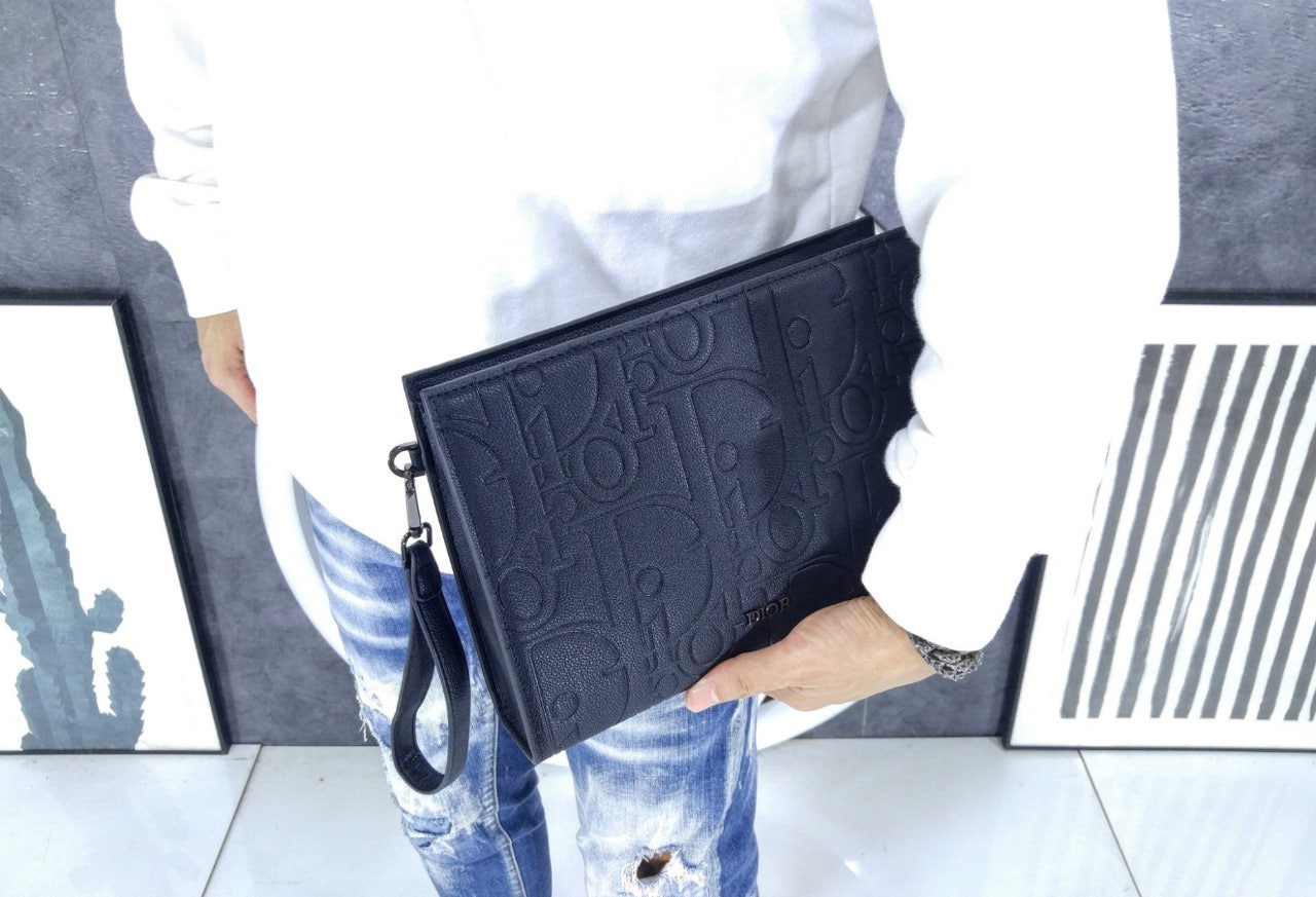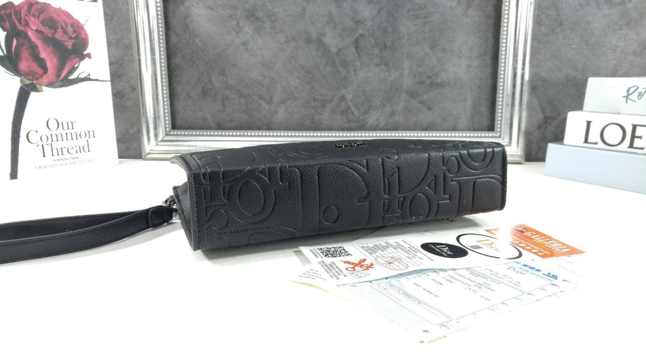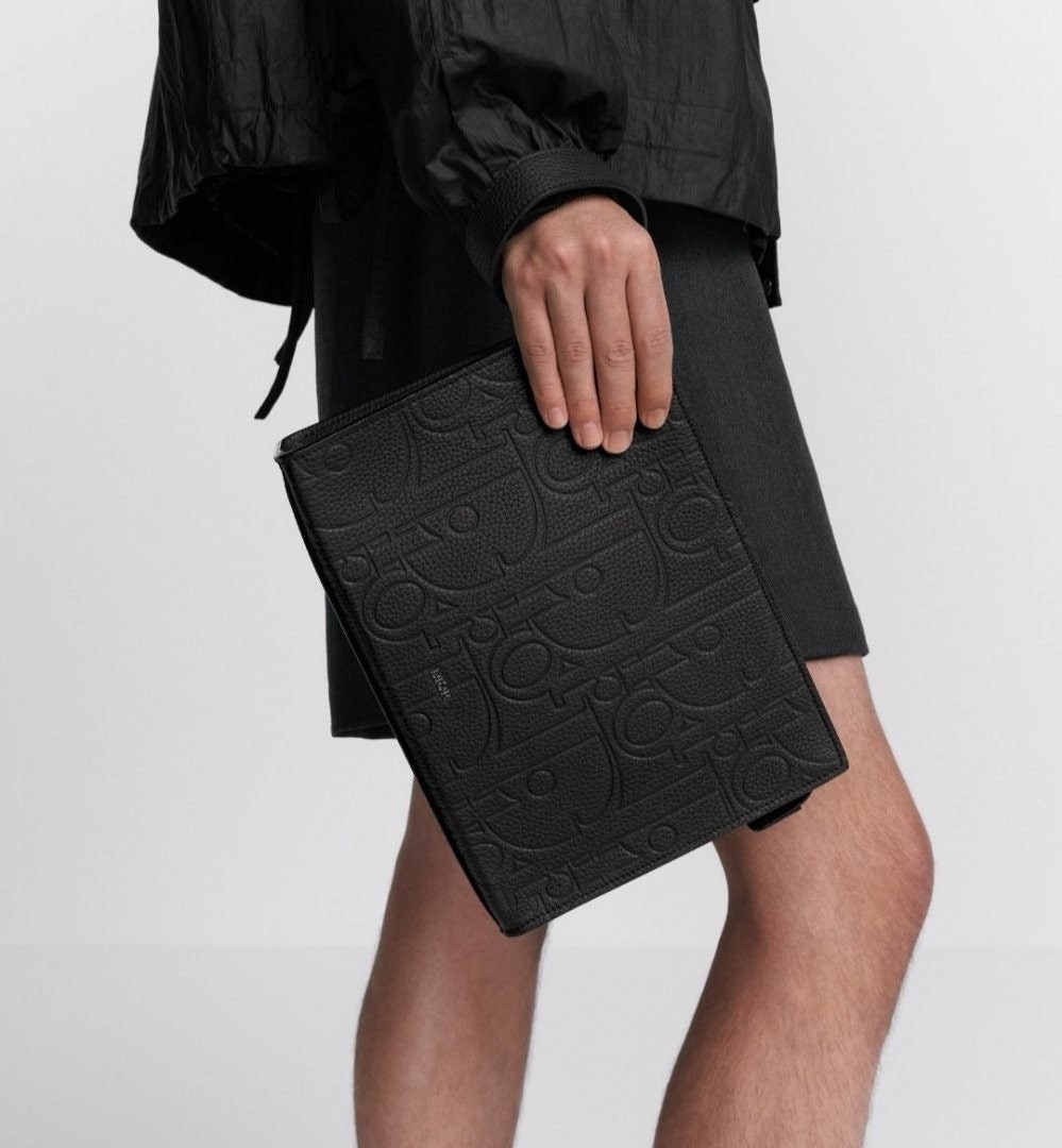 디☆ 하우스의 에센셜 파우치입니다. 디☆ 하우스 아뜰리에의 탁월한 기술을 엿볼 수 있는 아이템으로, 블랙 송아지 가죽 소재에 아이코닉한 모티브의 섬세한 엠보싱을 장식한 D☆or Gravity 가죽 소재로 제작되었으며 앞면의 D☆or 시그니처가 돋보입니다. 넉넉한 지퍼 수납공간은 휴대폰을 보관하기 좋아요. 그레인 송아지 가죽 소재의 탈착식 손목 스트랩으로 구성되어 손에 들거나 백 안에 휴대하기 좋습니다.