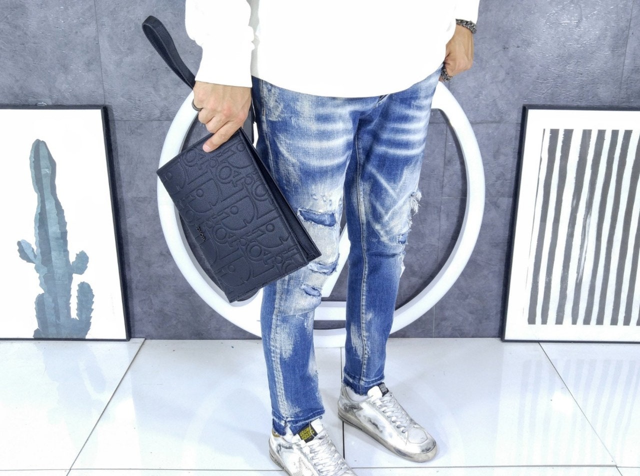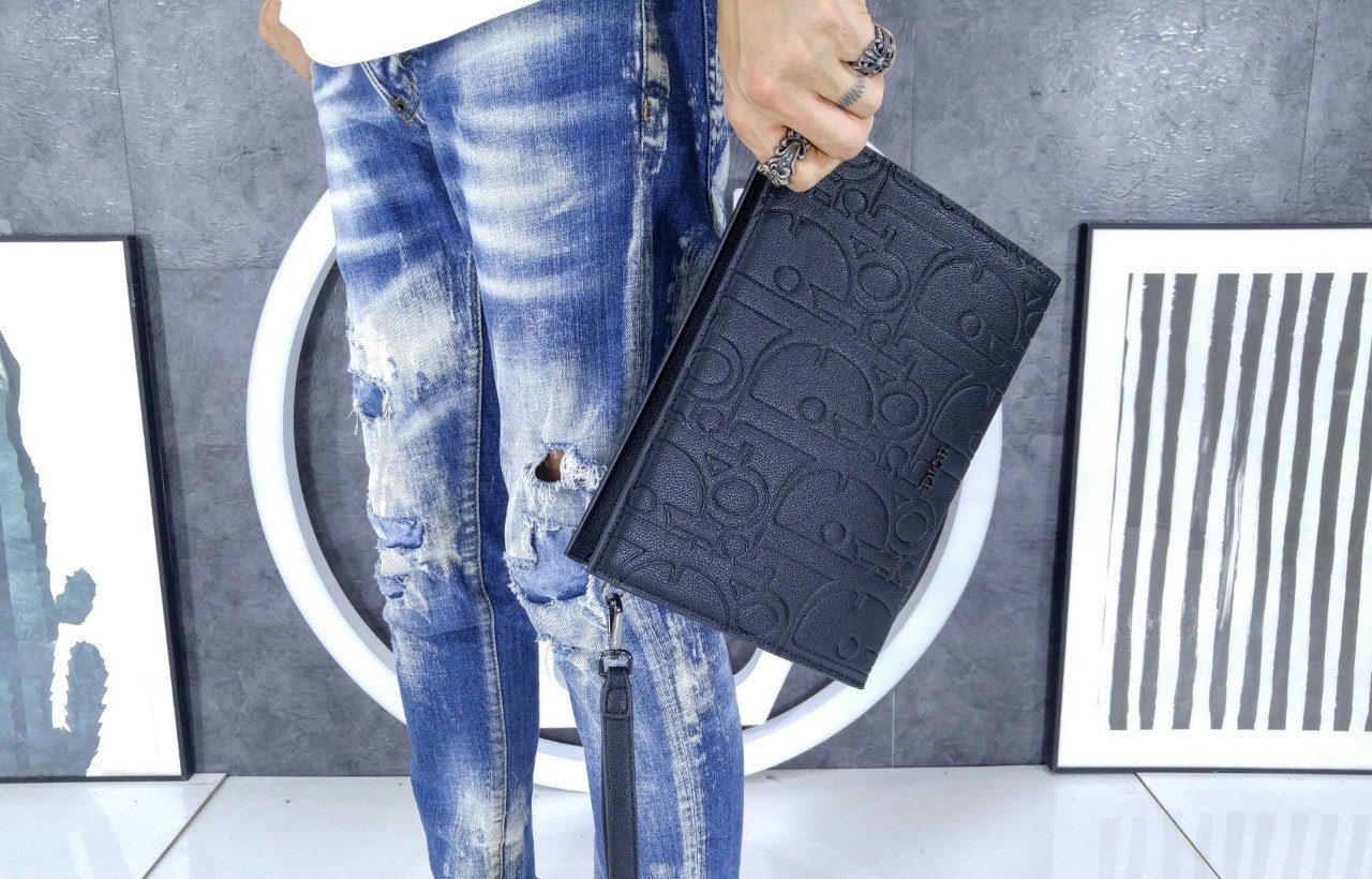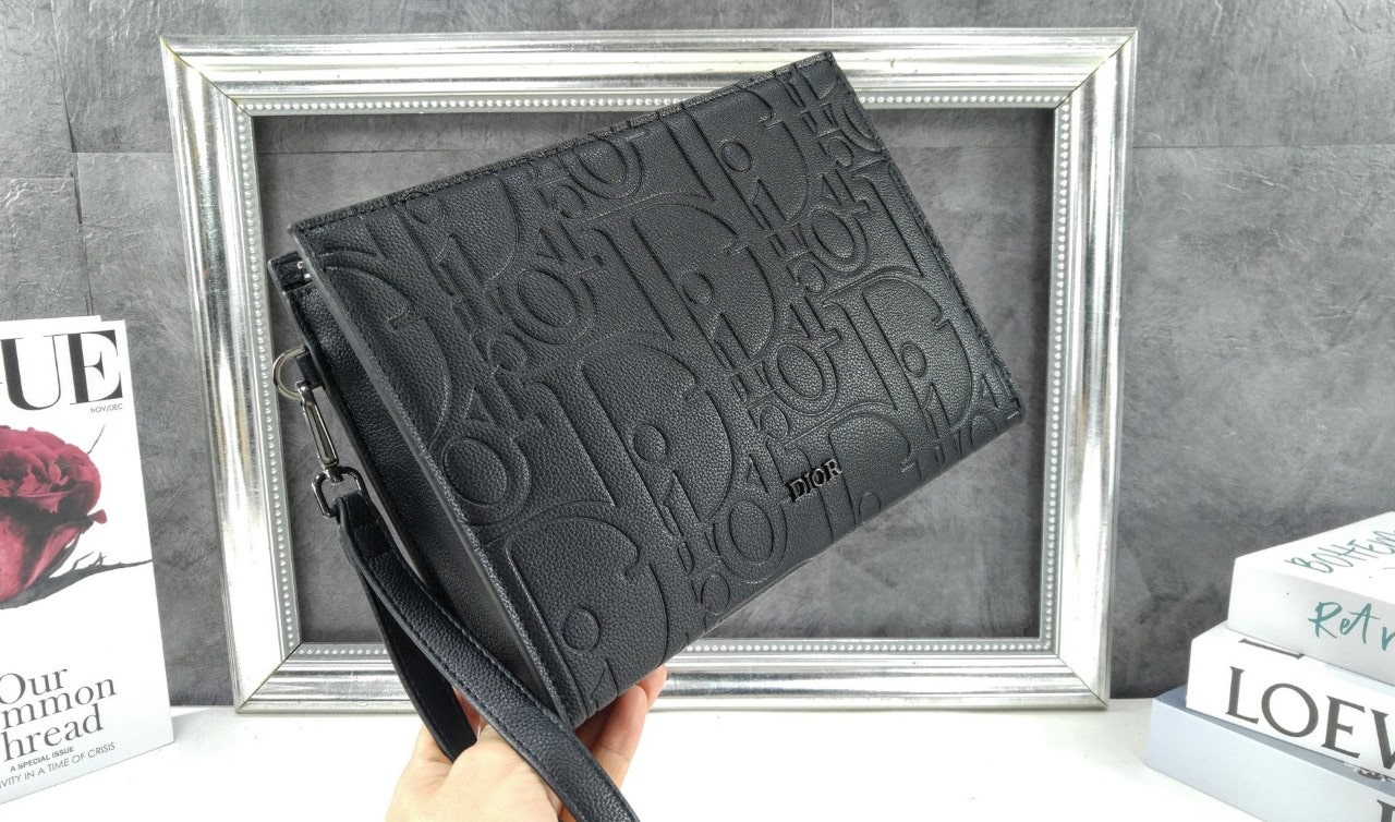 디☆ 하우스의 에센셜 파우치입니다. 디☆ 하우스 아뜰리에의 탁월한 기술을 엿볼 수 있는 아이템으로, 블랙 송아지 가죽 소재에 아이코닉한 모티브의 섬세한 엠보싱을 장식한 D☆or Gravity 가죽 소재로 제작되었으며 앞면의 D☆or 시그니처가 돋보입니다. 넉넉한 지퍼 수납공간은 휴대폰을 보관하기 좋아요. 그레인 송아지 가죽 소재의 탈착식 손목 스트랩으로 구성되어 손에 들거나 백 안에 휴대하기 좋습니다.