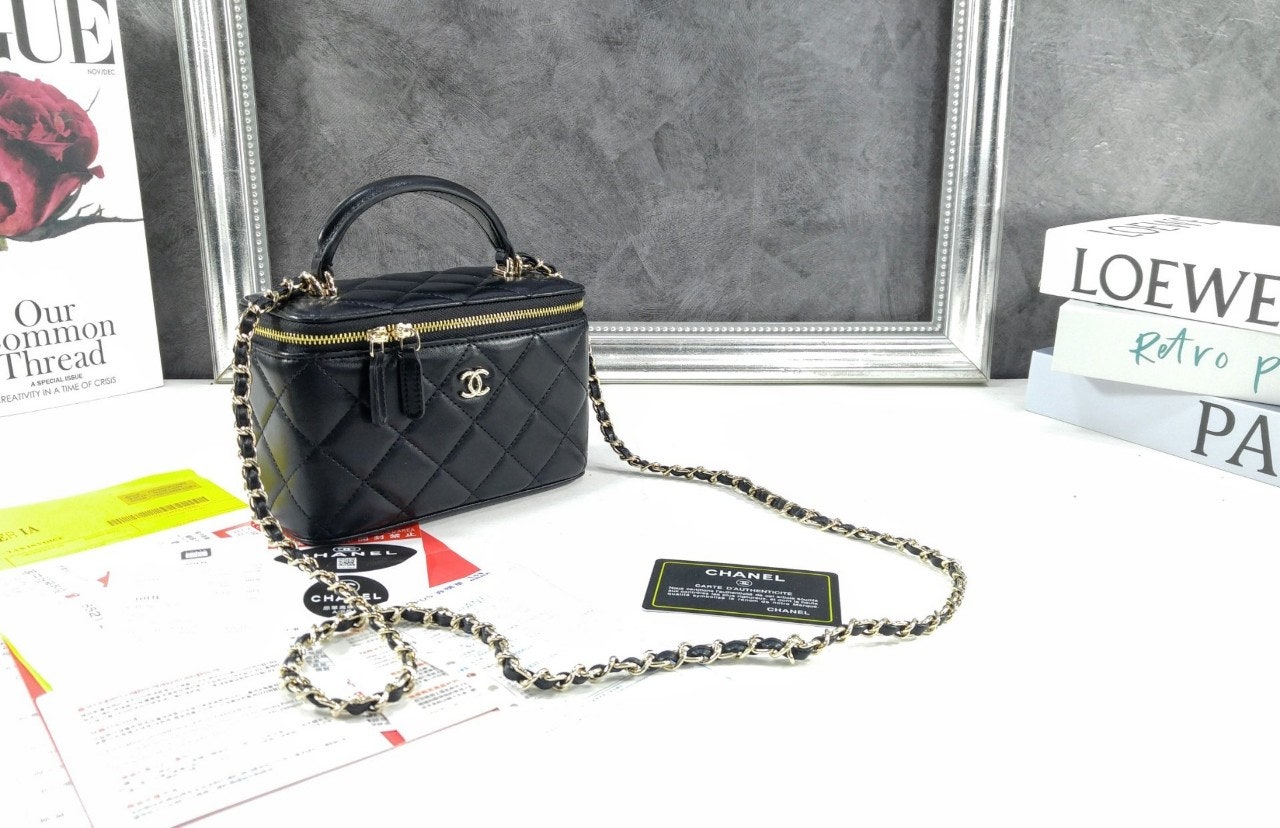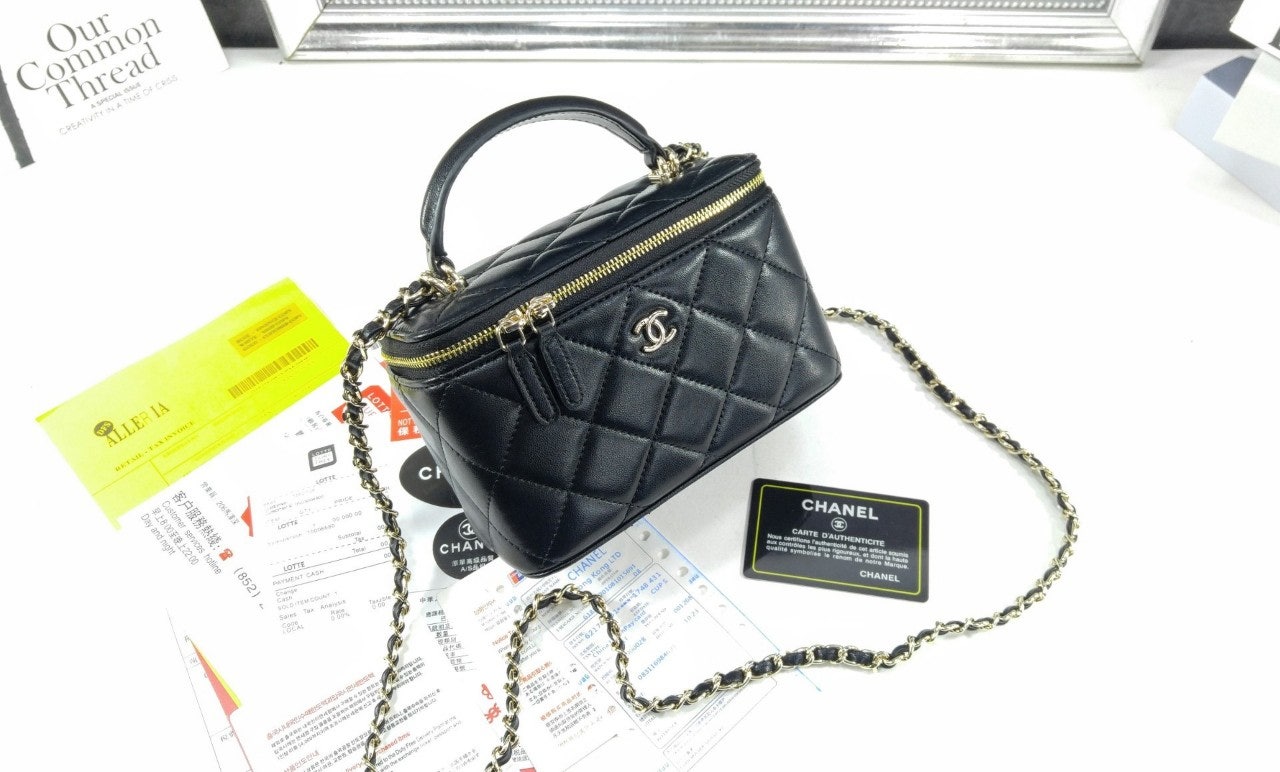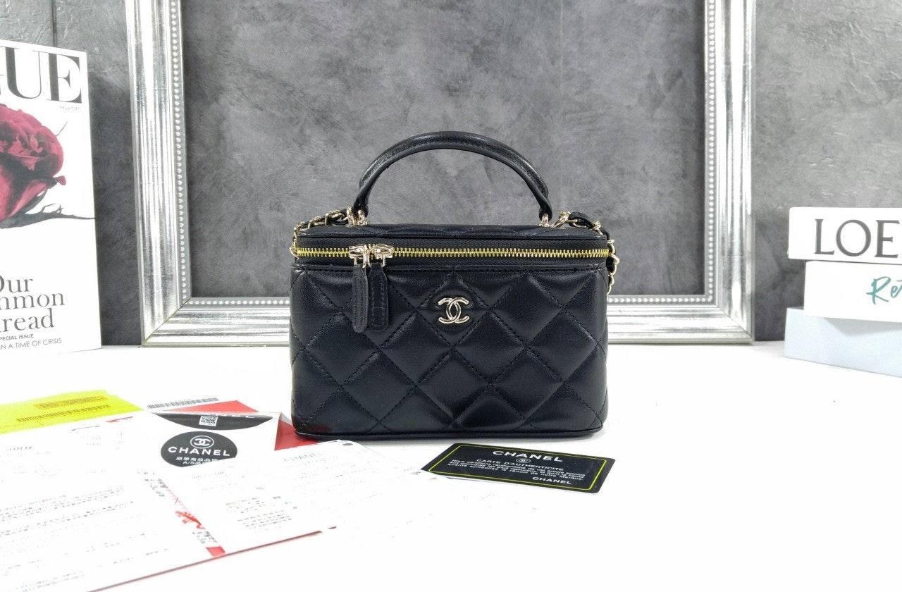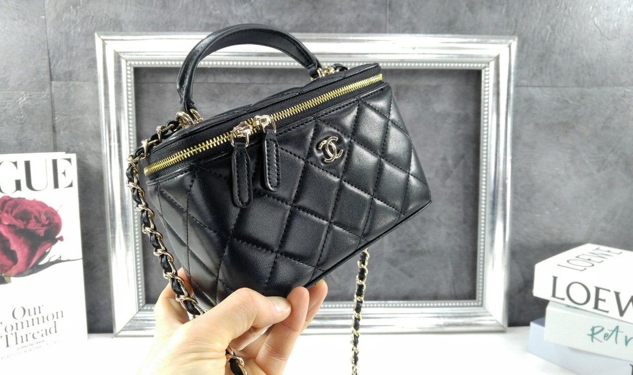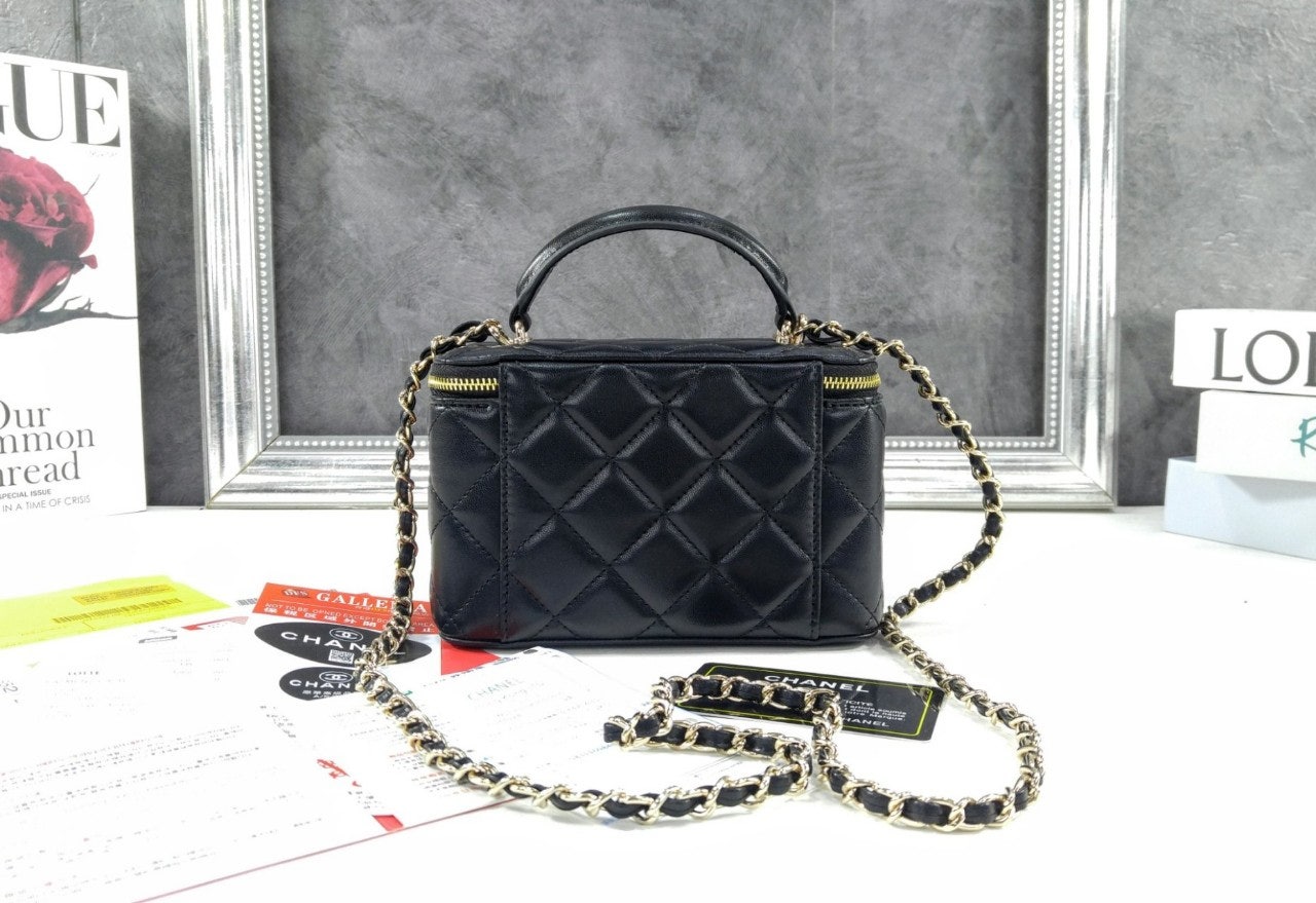 샤☆ 클래식 탑핸들 직사각 베니티 WOC 블랙 AP2199-B06660-94305 17 × 11 × 8