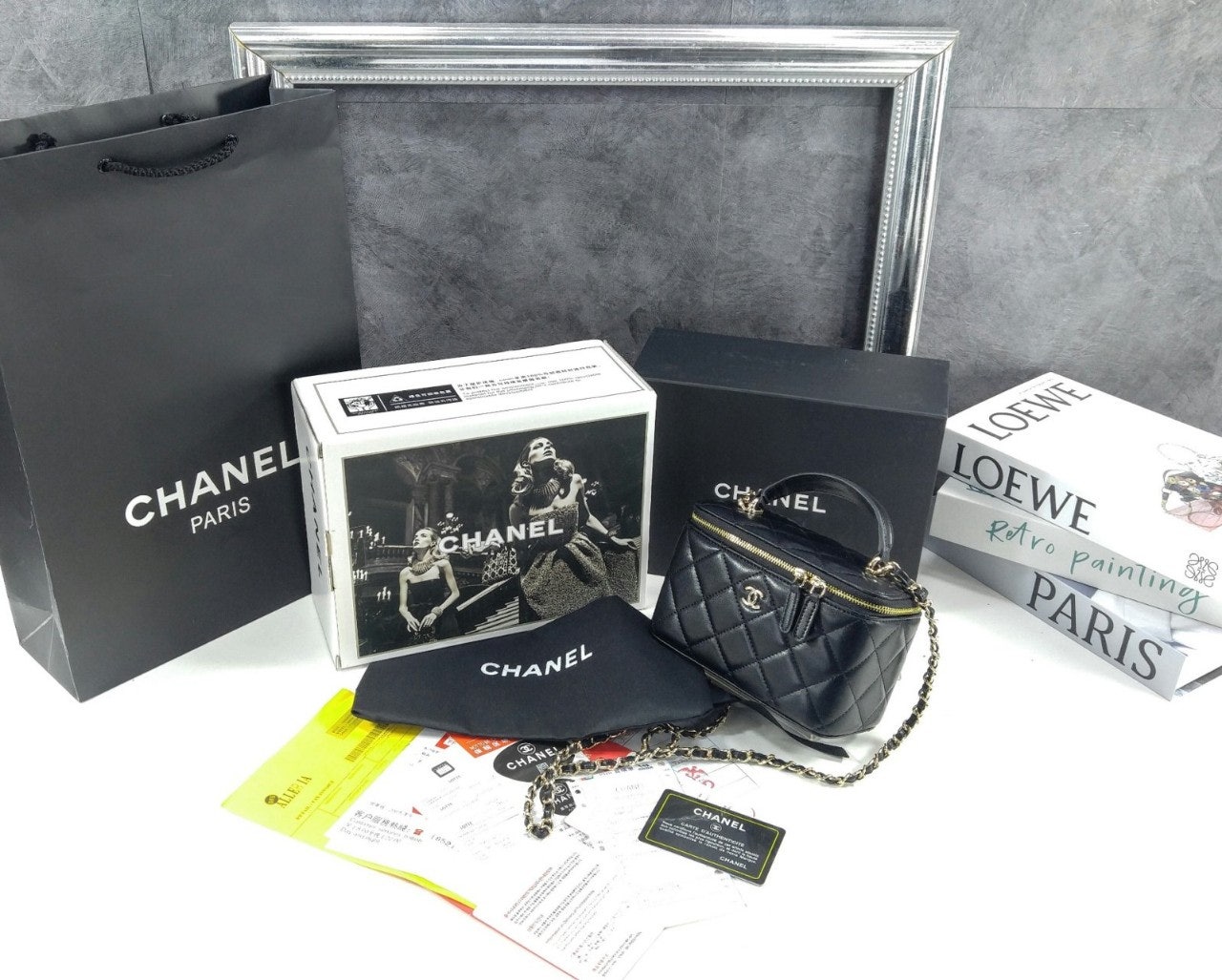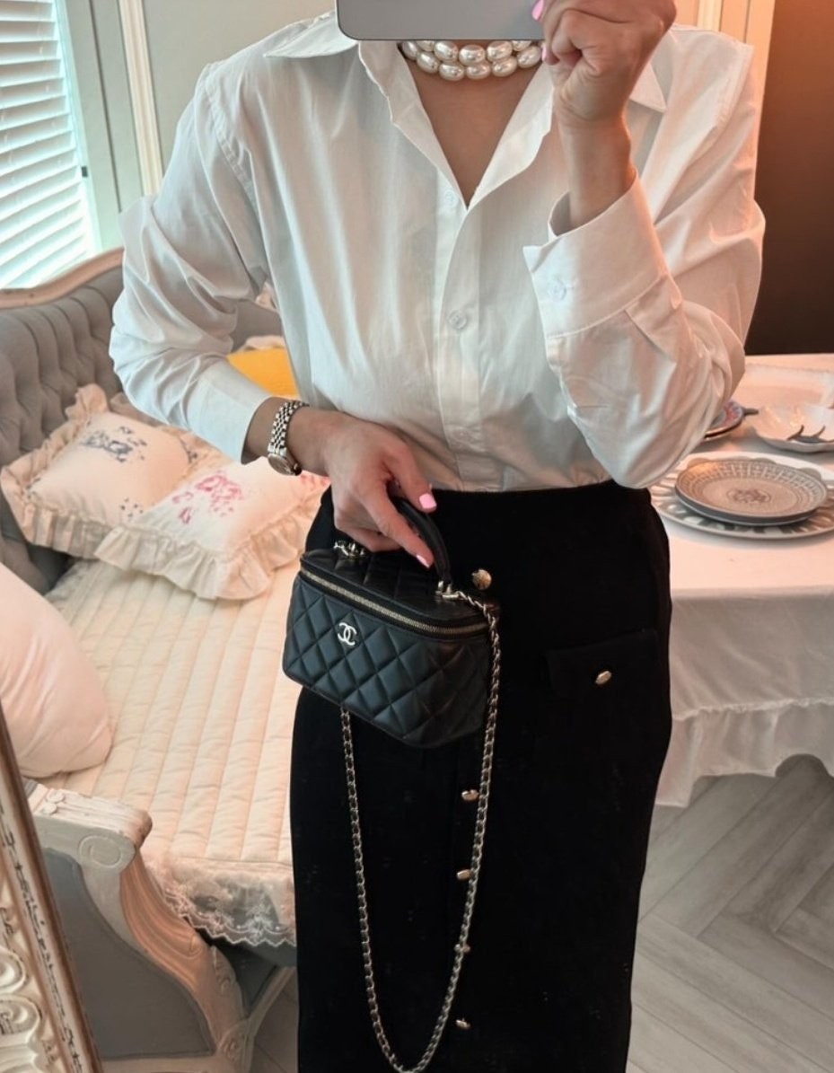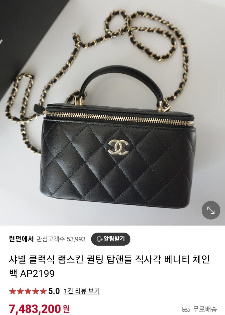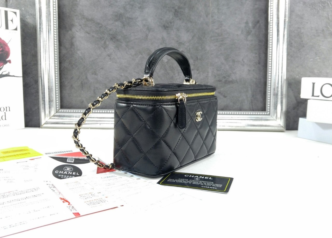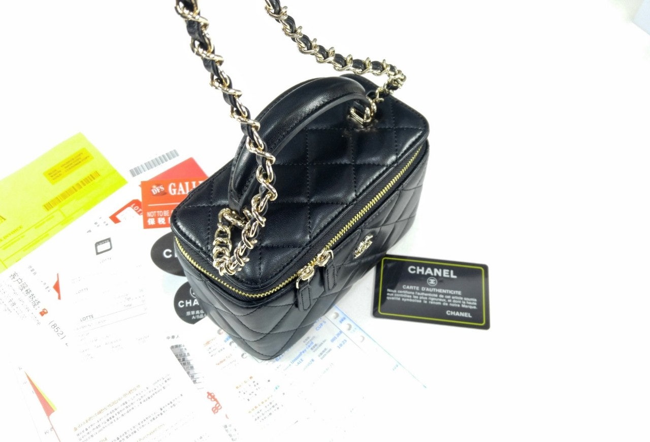 샤☆ 클래식 탑핸들 직사각 베니티 WOC 블랙 AP2199-B06660-94305 17 × 11 × 8
