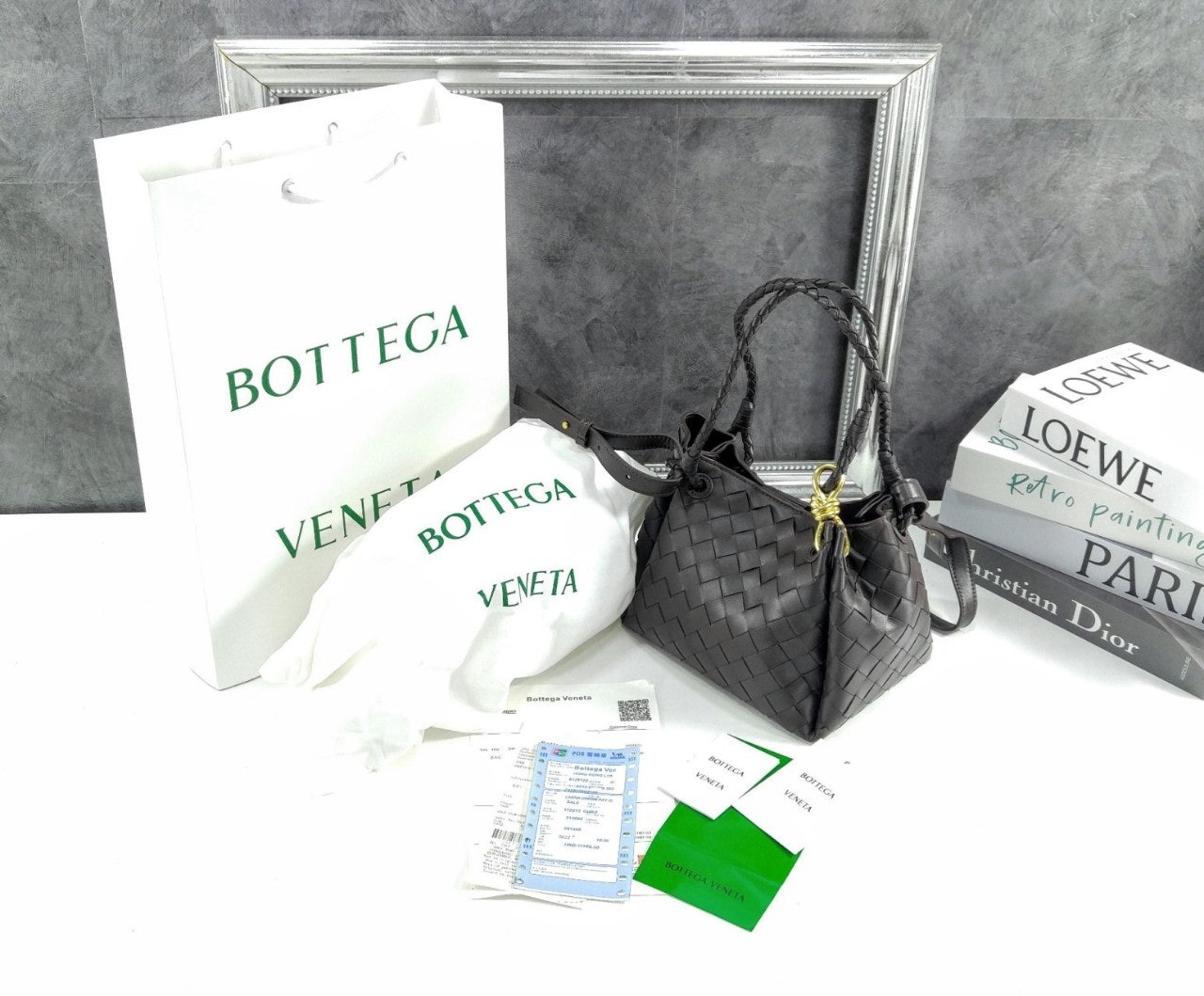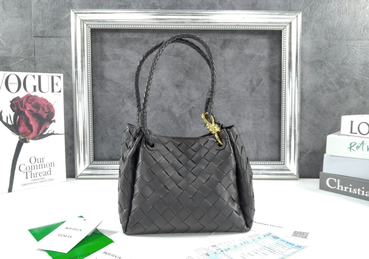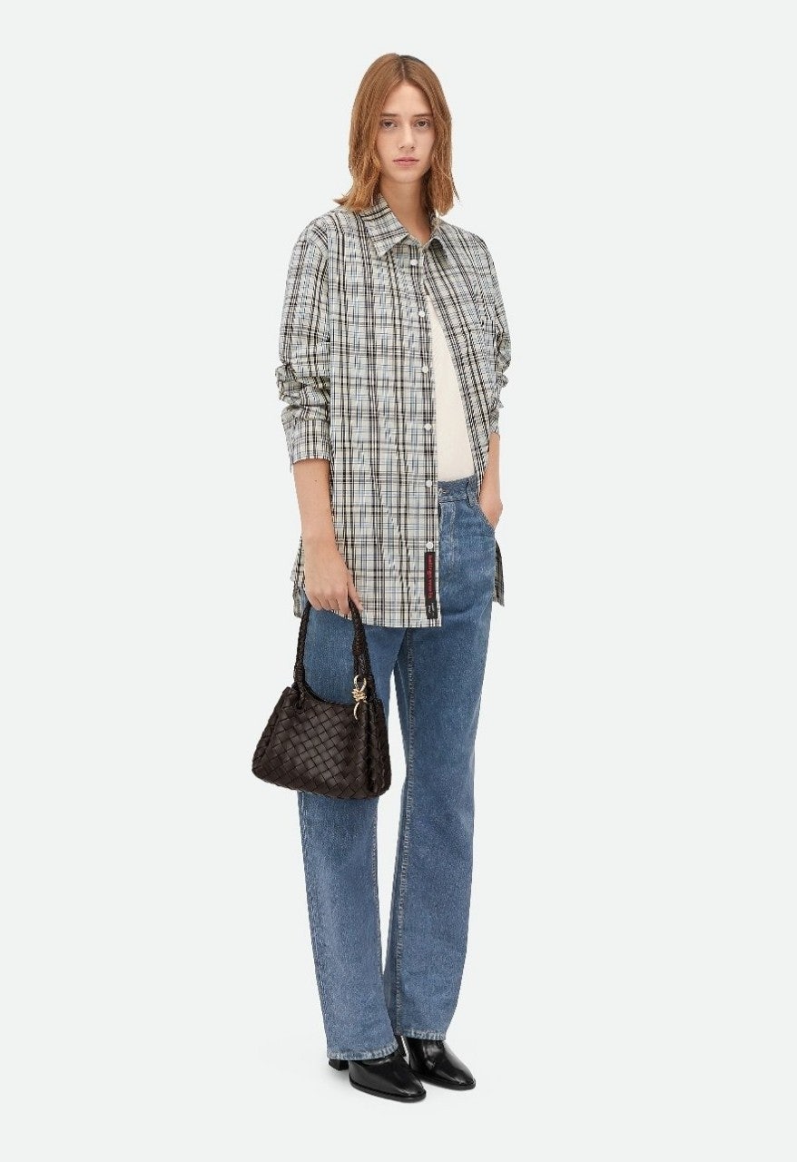 시그니처 놋 디테일과 탈착 가능한 크로스 스트랩을 갖춘 유연한 인트레치아토 가죽 소재의 숄더 백.